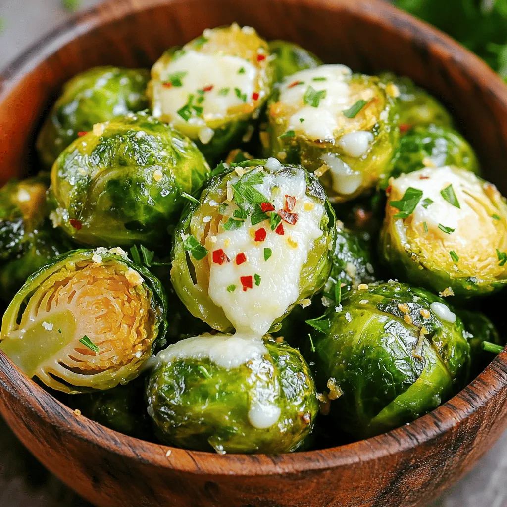 Once the cheese melts, carefully move the Brussels sprouts to a serving bowl. Drizzle 1 tablespoon of fresh lemon juice over them. This adds a bright flavor. For a fresh look, garnish with chopped parsley. Enjoy these as a side dish or a tasty snack!