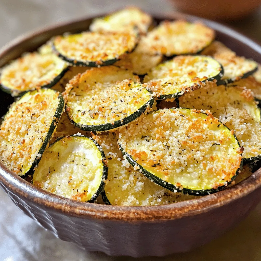 These zucchini chips shine when served warm. For a fun twist, try dipping them in marinara sauce or ranch dressing. You can also sprinkle extra Parmesan cheese on top for added flavor. Serve them in a rustic bowl for a nice presentation. Your guests will love this tasty snack!
