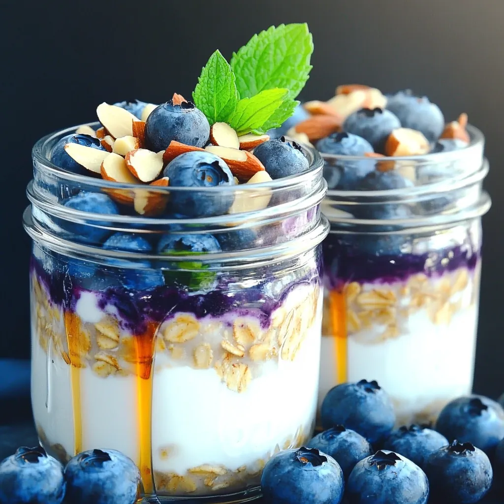 Serve your oats in clear jars to show off their colors. Top them with extra blueberries and almonds for crunch. A drizzle of maple syrup adds sweetness and shine. For a fresh touch, add a sprig of mint. If you want a warm option, heat the jar in the microwave for 30 seconds. Enjoy your oats chilled or warm, whichever you prefer!