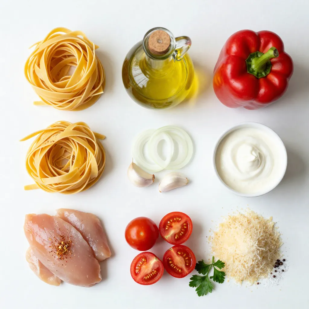 To make this dish fast, prep your ingredients first. Slice the chicken, bell pepper, onion, and garlic ahead of time. Use a large skillet to cook the chicken and veggies at the same time as the pasta. Cook the fettuccine while you sear the chicken. This way, you combine everything quickly for a speedy meal.