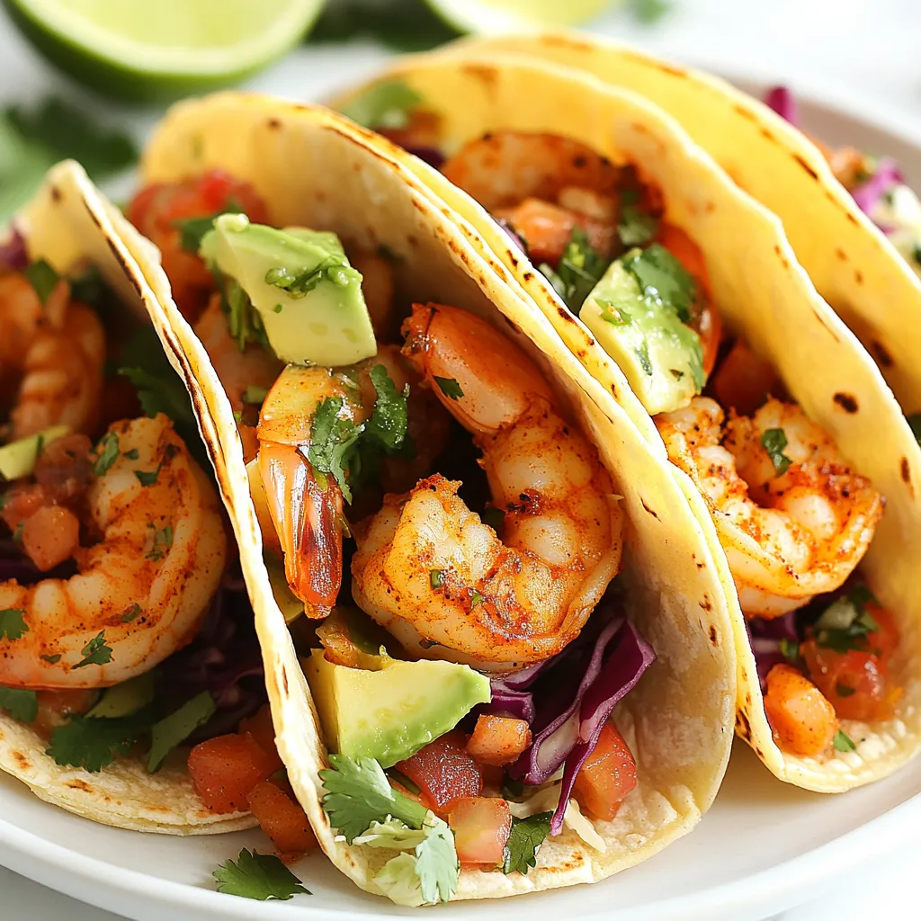 As for sides, consider beans or rice. They pair well with tacos. A fresh salad is also nice. For drinks, try a cold lemonade or a light beer. They balance the flavors of the spicy shrimp.