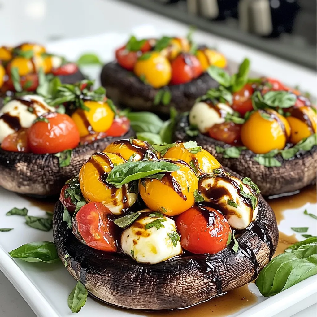 These ingredients create a bright, fresh flavor. The portobellos serve as a hearty base. The mozzarella adds creaminess, while the tomatoes bring a sweet burst. Fresh basil gives a nice herbal note.