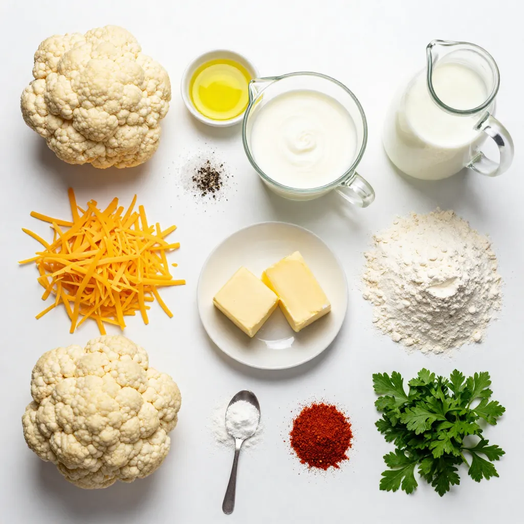 To make Cheesy Cauliflower Au Gratin, you need a few key ingredients. Here’s what you’ll gather: