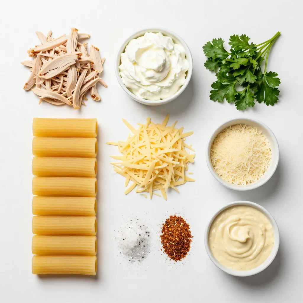Main Ingredients for Chicken Alfredo Stuffed Manicotti