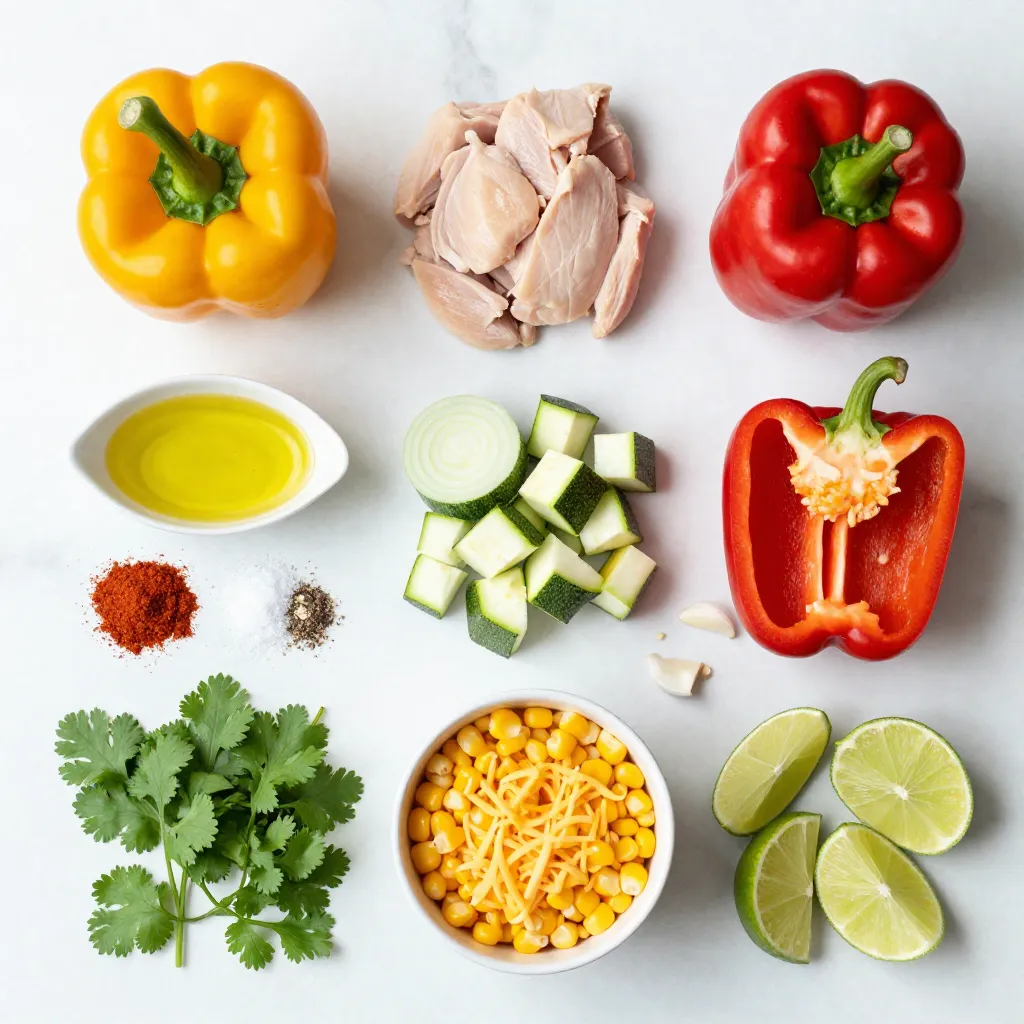 The main ingredients are the stars of this dish. The bell peppers serve as the tasty, colorful base. I love to pick large peppers for a perfect fit. The chicken breast adds protein and a nice texture. Using extra virgin olive oil helps to keep everything moist as it cooks.