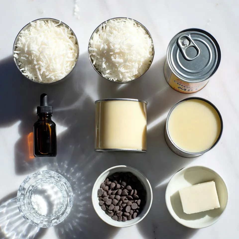 For these chocolate dipped coconut macaroons, the main ingredients are simple yet flavorful. First, we use shredded unsweetened coconut. This gives our macaroons that chewy texture we love. Sweetened condensed milk adds sweetness and helps bind everything together. A splash of vanilla extract brings out the delicious flavors. We also add a pinch of salt to balance the sweetness.