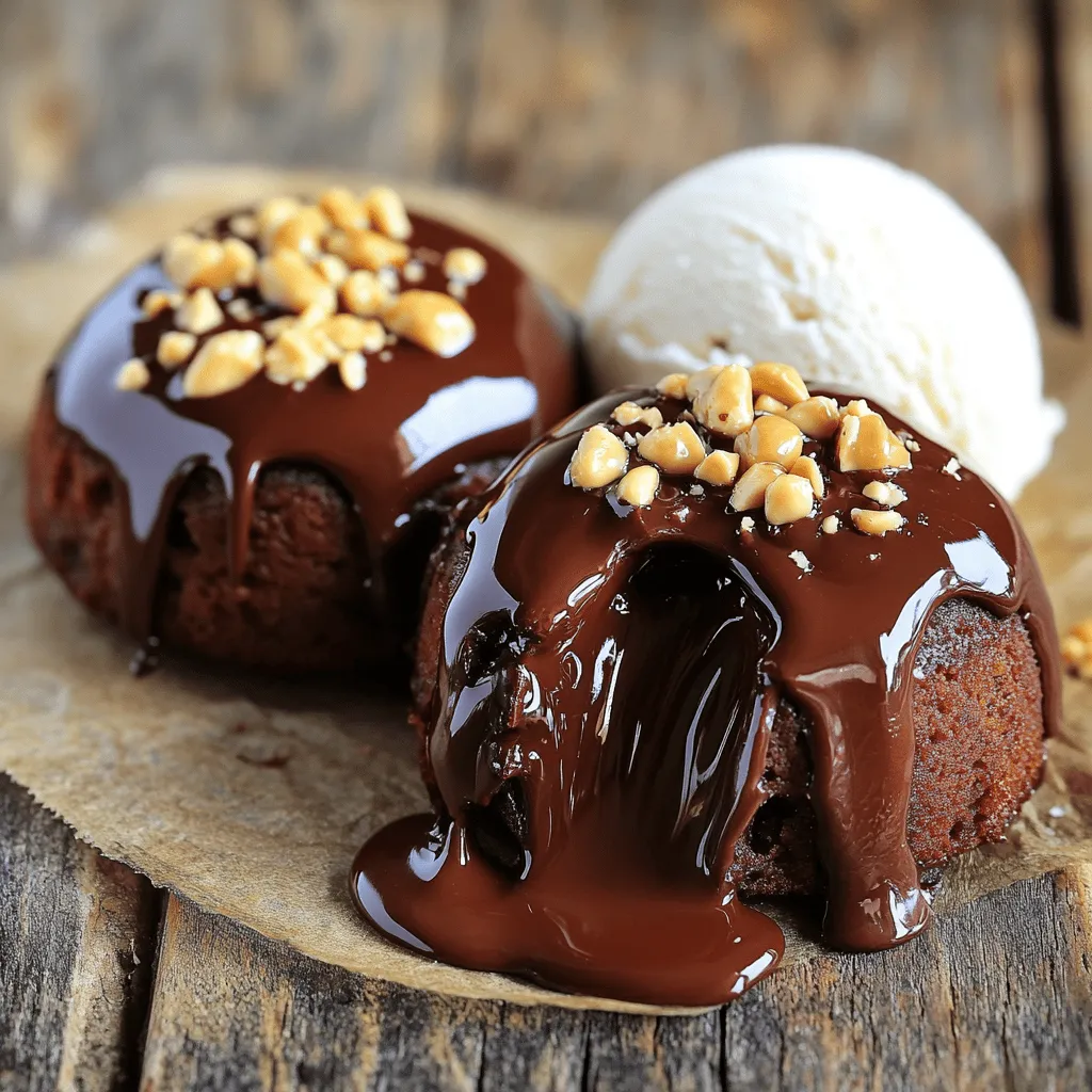 - Chocolate and Butter Combination - 1 cup semi-sweet chocolate chips - ½ cup unsalted butter This mix creates a rich base for your lava cakes. The chocolate chips melt down to create that gooey center we all love. The butter adds a silky texture, making each bite feel like a warm hug. - Dry Ingredients Overview - 1 cup powdered sugar - ½ cup all-purpose flour - ½ teaspoon salt Powdered sugar gives sweetness and helps the cakes rise. All-purpose flour adds structure, while salt balances the flavors. Each ingredient plays a role in making the cake rich and indulgent. - Flavor Enhancers and Fillings - 4 tablespoons creamy peanut butter - 4 tablespoons additional chocolate chips (for the molten center) - 2 large eggs - 2 egg yolks - 1 teaspoon vanilla extract Peanut butter brings a nutty flavor that pairs well with chocolate. Extra chocolate chips in the center keep the gooey goodness flowing. Eggs provide the lift, while vanilla adds a warm aroma. Each element enhances the overall taste and experience. Start by greasing the ramekins with unsalted butter. This step is key. If you skip it, the cakes might stick. After greasing, dust the inside with cocoa powder. This gives a nice finish and adds flavor. Tap out any excess cocoa to keep it neat. Next, grab a microwave-safe bowl. Add the semi-sweet chocolate chips and butter. Microwave them in 30-second bursts. Stir after each round until they melt smoothly. This method is quick and easy. Make sure the mix is well combined. Once your chocolate mix has cooled, add the powdered sugar. Whisk it in until smooth. No lumps should remain. Then, crack in the eggs and egg yolks. Whisk again until everything blends nicely. Stir in the vanilla extract for great flavor. Now, gently fold in the all-purpose flour and salt. Use a spatula to mix until just combined. Avoid overmixing to keep the cakes soft and gooey. Divide half the batter among the ramekins. Fill them halfway, leaving room for the filling. Make a small well in the center of each. Add a tablespoon of creamy peanut butter and chocolate chips to each well. Cover the filling with the remaining batter. Place the filled ramekins on a baking sheet. Bake them in a preheated oven at 425°F (220°C). Bake for 12 to 14 minutes. The edges should be set, but the center needs to be soft. You want that perfect lava texture. After baking, cool the ramekins for about a minute. Use a small knife to run around the edges. Then invert each ramekin onto a plate. Watch that gooey center flow out! Serve warm with a scoop of vanilla ice cream. Drizzle molten chocolate on top and sprinkle with crushed peanuts for extra crunch. To bake perfect lava cakes, pay attention to your timing. Bake them for 12-14 minutes. The edges should be set, but the center should still jiggle slightly. This is key for that gooey center. Use a timer to avoid overbaking. Common mistakes include overmixing the batter or filling the ramekins too full. Remember, you want to create space for the molten center. Also, make sure your oven is preheated. An unheated oven can lead to uneven baking. You can switch up your fillings for fun flavors. Try adding Nutella or almond butter instead of peanut butter. Each will give a unique taste. You can also add a sprinkle of sea salt on top to enhance the sweetness. Serve your lava cakes with vanilla ice cream or whipped cream. Fresh berries like raspberries or strawberries add a nice bright flavor too. The contrast of warm cake and cold ice cream makes every bite special. Make your lava cakes look great on the plate. Use a small knife to run around the edge before you flip them out. This helps keep their shape. Garnish your cakes with a drizzle of melted chocolate. You can also sprinkle crushed peanuts or cocoa powder on top. A few fresh mint leaves can add a pop of color. Remember, we eat with our eyes first, so make it beautiful! {{image_4}} Gluten-Free and Vegan Options You can still enjoy these lava cakes with simple swaps. Use a gluten-free flour blend instead of all-purpose flour. For a vegan version, replace the eggs with flaxseed meal mixed with water. Use coconut oil in place of butter and choose dairy-free chocolate chips. These changes keep the rich taste but make it friendlier for different diets. Sugar Substitutes for a Healthier Treat For those looking to cut down on sugar, try using coconut sugar or a sugar substitute like stevia. Both options can work well in this recipe. They offer sweetness without the added calories. Remember, the texture may change slightly, but the rich flavors will still shine through. Adding Other Nut Butters Peanut butter is great, but you can mix it up! Try almond butter or cashew butter for a new twist. Each nut butter brings its own taste and creaminess. This small change can create a whole new lava cake experience. Infusing with Coffee or Mint For coffee lovers, add a shot of espresso to the batter. This adds depth and a slight bitterness that pairs well with chocolate. If you prefer mint, add a few drops of mint extract. This gives a refreshing taste and elevates the dessert. Both flavors complement chocolate beautifully. Lava Cake Cupcakes Transform your lava cakes into cupcakes for easier serving. Use muffin tins instead of ramekins. Bake for about 10-12 minutes, but keep an eye on them. Just like the original, they will still have that gooey center. Top with a swirl of frosting for extra flair. Mini Lava Cake Bites Create bite-sized treats by making mini versions. Use a mini muffin tin and adjust the baking time to about 8-10 minutes. These little bites are perfect for parties or gatherings. Serve them on a platter for an eye-catching display that will impress your guests. To keep your chocolate peanut butter lava cakes fresh, store them properly. - Refrigeration Guidelines: Let the cakes cool completely. Place them in an airtight container. They can stay in the fridge for up to 3 days. This keeps them moist and tasty. - Freezing Tips for Longer Storage: F