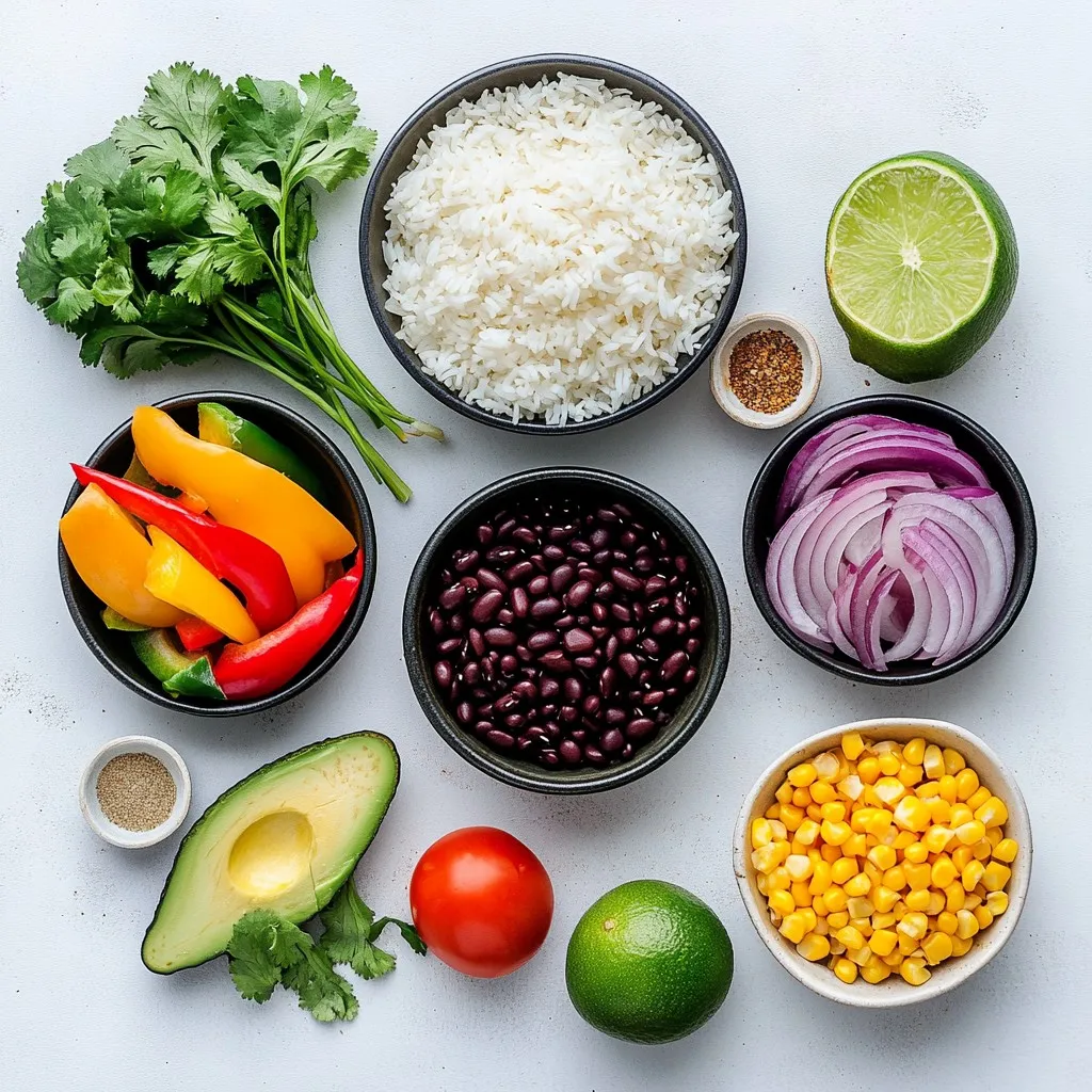 The main ingredients form the backbone of your Cilantro Lime Rice Bowls. Jasmine rice offers a lovely aroma and soft texture. Vegetable broth adds flavor and depth. Black beans provide protein and heartiness, making this meal filling.