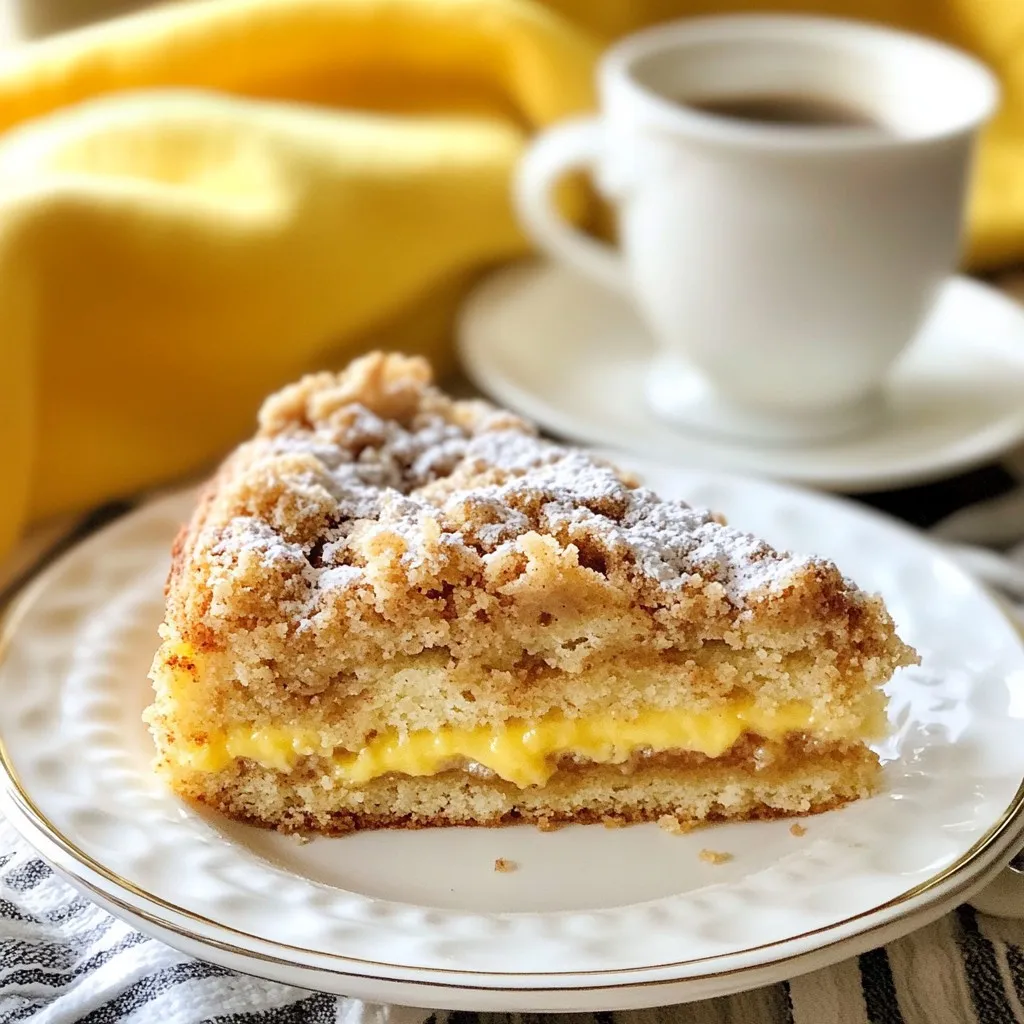 A delicious coffee cake with a cinnamon streusel topping, perfect for pairing with coffee.