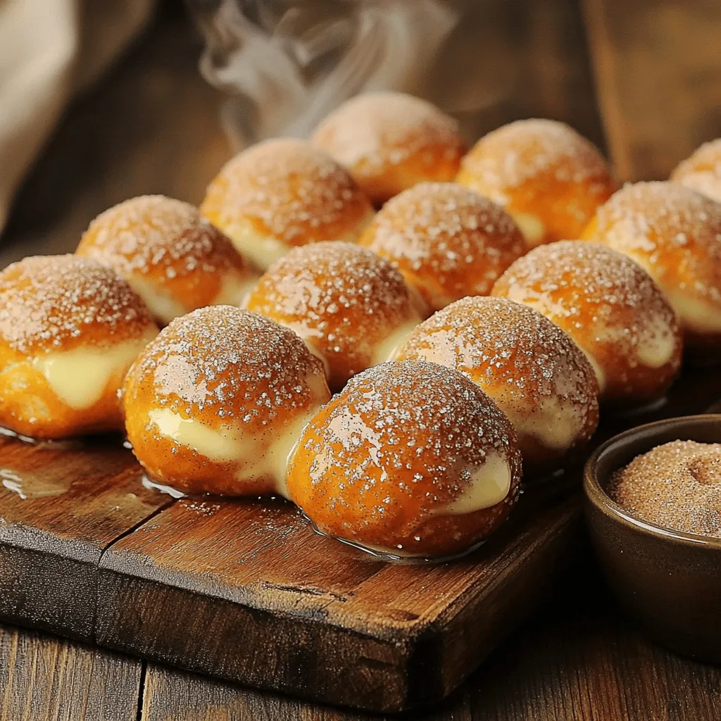 To make these delightful pretzel bites, you need some key ingredients: - 1 ½ cups warm water (about 110°F / 43°C) - 2 tablespoons granulated sugar - 2 ¼ teaspoons active dry yeast (1 packet) - 4 cups all-purpose flour - ½ teaspoon salt - ½ cup baking soda - 4 tablespoons unsalted butter, melted - ½ cup granulated sugar (for coating) - 2 teaspoons ground cinnamon These items create a soft dough that rises well and has a wonderful flavor. You can add fun twists to your pretzel bites with these optional ingredients: - 1 teaspoon vanilla extract for a sweet hint - A pinch of nutmeg for a warm spice - Sea salt for a savory touch on top These additions make your bites more unique and exciting. Each serving of cinnamon sugar pretzel bites has around: - Calories: 280 - Total Fat: 8g - Carbohydrates: 45g - Protein: 6g This snack is tasty but should be enjoyed in moderation. Start by gathering your ingredients. In a mixing bowl, mix 1 ½ cups of warm water with 2 tablespoons of granulated sugar and 2 ¼ teaspoons of active dry yeast. Stir gently and let it sit for about 5-10 minutes. Watch for bubbles and foam; this means the yeast is active and ready to use. In a large bowl, whisk together 4 cups of all-purpose flour and ½ teaspoon of salt. Once your yeast mixture is bubbly, pour it into the flour along with 4 tablespoons of melted butter. Mix until the dough starts to form. Knead the dough on a floured surface for about 5 minutes. It should be smooth and elastic. Shape it into a ball and place it in a greased bowl. Cover it and let it rise in a warm spot for about 1 hour, or until it doubles in size. Preheat your oven to 425°F (220°C). Line two baking sheets with parchment paper. After the dough has risen, punch it down to release air. Cut the dough into 8 equal pieces. Roll each piece into a rope about 1 inch thick. Cut the ropes into bite-sized pieces, around 1-2 inches long. In a large pot, bring 4 cups of water to a boil and carefully add ½ cup of baking soda. This will bubble up a lot, so be cautious. Boil the pretzel bites in batches for about 30 seconds. Use a slotted spoon to take them out and place them on your baking sheets. In a small bowl, mix ½ cup of granulated sugar with 2 teaspoons of ground cinnamon. Brush each pretzel bite with the remaining melted butter. Sprinkle the cinnamon sugar mix generously on top. Bake in the oven for 12-15 minutes until they turn golden brown. Let them cool for a bit before serving. Enjoy them warm for the best taste! To get that soft and chewy texture, knead the dough well. Kneading helps develop gluten, which gives pretzels their structure. After kneading, let the dough rise until it doubles in size. This step is key! The warm water needs to be just right, around 110°F. If it's too hot, it can kill the yeast. If it's too cool, the dough won’t rise well. When coating the pretzel bites, brush each one with melted butter first. This helps the cinnamon sugar stick better. Mix your cinnamon and sugar well before sprinkling. Don’t be shy—coat them generously! A good layer adds flavor and sweetness. You can even add a pinch of salt to the mix for a nice contrast. One big mistake is not letting the dough rise enough. This can lead to dense pretzels. Make sure you cover the bowl during the rise. Another mistake is boiling the bites for too long. Stick to about 30 seconds in the baking soda water. Finally, don’t skip the butter and sugar coating. It makes a big difference in taste! {{image_4}} You can easily change up the flavor of your pretzel bites. Instead of just cinnamon, try adding nutmeg or ginger to the sugar mix. You could even use vanilla sugar for a sweet twist. For a savory option, sprinkle garlic powder or cheese before baking. Each flavor brings a new joy to these bites. Dipping sauces can elevate your pretzel bites. Cream cheese dip pairs well with the sweetness. A warm chocolate sauce adds a rich touch. You can also try a tangy yogurt dip mixed with honey. Each sauce adds a fun layer of flavor that everyone will love. Present your cinnamon sugar pretzel bites in fun ways. Use a rustic basket lined with parchment paper for a cozy look. Add a sprinkle of sea salt for a surprising twist. Serve them with small cups of dipping sauce for extra fun. These ideas make your bites not only tasty but also pleasing to the eye. After you enjoy your cinnamon sugar pretzel bites, store any leftovers properly. Place them in an airtight container. This keeps them fresh and soft. You can keep them at room temperature for up to two days. For longer storage, move them to the fridge, where they can last about a week. When you want to enjoy your leftover pretzel bites, reheating is key. The best method is to use an oven. Preheat it to 350°F (175°C). Arrange the bites on a baking sheet. Heat them for about 5-10 minutes. This makes them warm and slightly crispy again. If short on time, you can use a microwave. Heat them for about 15-20 seconds. Be careful; they can get chewy if overheated. If you want to save some pretzel bites for later, freezing is a great option. Let the bites cool completely. Then, place them in a freezer-safe bag or container. Make sure to remove excess air to prevent freezer burn. You can freeze them for up to three months. When you’re ready to eat, thaw them in the fridge overnight. Reheat them as mentioned above for the best taste. Yes, you can. Use a gluten-free flour blend. Look for one that has xanthan gum. This helps mimic the texture of regular flour. Remember, gluten-free dough can be stickier. You may need to adjust the water or flour amount. The dough should double in size. After about an hour, check it. If you gently press it with your finger, it should hold the shape. This means it has risen properly and is ready to be shaped. Serve them warm in a basket lined with parchment. This adds a nice touch. You can also pair them with dips. Cream cheese or chocolate sauce works great for a sweet treat. Yes, you can u