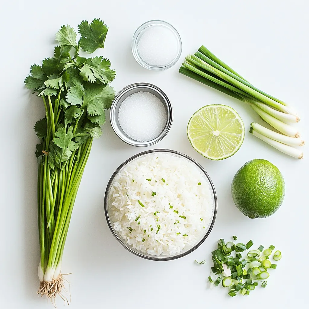 These ingredients create a creamy, fragrant rice dish. The jasmine rice gives it a nice texture. Coconut milk adds richness, while lime brings a fresh, zesty flavor.