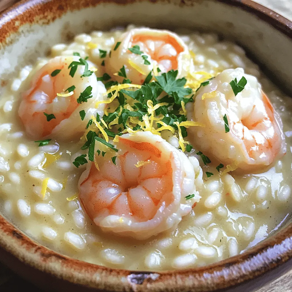 To make your creamy garlic shrimp risotto, gather these key ingredients: - 1 cup Arborio rice - 1 lb shrimp, peeled and deveined - 4 cups vegetable broth - 1 small onion, finely chopped - 4 cloves garlic, minced - 1 cup heavy cream - 1 cup grated Parmesan cheese - 2 tablespoons olive oil - 2 tablespoons butter - 1 teaspoon lemon zest - Salt and black pepper to taste - Fresh parsley, chopped for garnish These ingredients work together to create an amazing flavor. Arborio rice gives the risotto its creamy texture. The shrimp adds protein and a taste of the sea. Garlic and onion offer a savory base, while heavy cream and Parmesan boost the richness. You can add some extra touches to enhance your dish: - Lemon wedges for a zesty kick - Extra Parmesan cheese for creaminess - Red pepper flakes for a bit of heat - Fresh basil or chives for a pop of color These garnishes can brighten up your risotto. They also let you customize flavors to your liking. A squeeze of lemon can balance the richness perfectly. To make cooking easier, use these tools: - Large skillet for cooking the risotto - Saucepan for warming the broth - Wooden spoon for stirring the risotto - Ladle for adding broth easily - Measuring cups for precise ingredients Having the right tools makes the cooking process smooth and fun. A large skillet helps with even cooking. A wooden spoon ensures you don’t scratch your pan while stirring. First, gather all your ingredients. You will need: - 1 cup Arborio rice - 1 lb shrimp, peeled and deveined - 4 cups vegetable broth - 1 small onion, finely chopped - 4 cloves garlic, minced - 1 cup heavy cream - 1 cup grated Parmesan cheese - 2 tablespoons olive oil - 2 tablespoons butter - 1 teaspoon lemon zest - Salt and black pepper to taste - Fresh parsley, chopped for garnish Next, warm the vegetable broth in a saucepan. Keep it on low heat. This helps the rice cook evenly. In a large skillet, heat 1 tablespoon of olive oil and 1 tablespoon of butter over medium heat. When the butter melts, add the chopped onion. Cook for about 3-4 minutes until the onion is soft and clear. Now, add the minced garlic. Cook it for 1-2 minutes until it smells great but does not brown. Pour in the Arborio rice next. Stir well to coat each grain. Toast the rice for 1-2 minutes. This step brings out its flavor. Now, add the warm vegetable broth one ladle at a time. Stir the rice often. Let it soak up most of the liquid before adding more. This takes about 18-20 minutes. The rice should be creamy and slightly firm when done. While the risotto cooks, heat the remaining tablespoon of olive oil and tablespoon of butter in another pan over medium-high heat. Add the shrimp and season with salt and pepper. Cook the shrimp for 2-3 minutes on each side. They should turn pink and be fully cooked. Remove them from heat and set aside. When the risotto reaches a creamy texture, stir in the heavy cream, grated Parmesan, and lemon zest. Mix until everything is combined. Gently fold in the sautéed shrimp. Taste and adjust the seasoning with salt and pepper. Serve the risotto hot. Top it with fresh parsley for color and flavor. Enjoy your delicious Creamy Garlic Shrimp Risotto! To make risotto creamy, use Arborio rice. This rice has a high starch content. Start with warm vegetable broth; it helps the rice cook evenly. Add the broth slowly, one ladle at a time. Stir often, allowing the rice to absorb the liquid. After about 18-20 minutes, the rice will be creamy and tender. Mixing in heavy cream and Parmesan at the end boosts the creaminess too. When cooking shrimp, start with a hot pan. Use a mix of olive oil and butter for flavor. Season the shrimp with salt and pepper before cooking. Cook them for just 2-3 minutes on each side. They should turn pink and opaque, indicating they are done. Avoid overcooking, as shrimp can become rubbery. Set the shrimp aside until the risotto is ready, then fold them in gently. Taste your risotto before serving. You may want to add more salt or pepper. Fresh lemon zest gives a bright flavor, so don’t skip it! If you prefer a stronger taste, add more garlic. Fresh herbs, like parsley, not only add flavor but also color. Feel free to adjust based on your palate. Cooking is all about finding the right balance for you. {{image_4}} If you want a vegetarian risotto, you can swap shrimp for mushrooms. Use hearty types like portobello or shiitake. They add great flavor and texture. You can also use firm tofu, cut into cubes, for protein. Make sure to sauté them well so they soak in the flavors. You can change up the seafood in this risotto too. Try scallops or lobster for a special treat. They cook quickly and add luxury to your dish. If you prefer a mix, combine different seafood. Just adjust cooking times to ensure everything is tender and juicy. Adding veggies is an easy way to boost nutrition. Peas, spinach, or asparagus work well. They add color and flavor. You can mix them in during the last few minutes of cooking. Fresh herbs like basil or chives can also brighten the dish. Stir in chopped herbs just before serving for a fresh taste. To store leftover risotto, first let it cool to room temperature. Place it in an airtight container. Make sure to cover it well to keep it fresh. Store the container in the fridge. It will stay good for about 3 days. When you're ready to eat the leftover risotto, use a pan for the best results. Add a splash of broth or water to the risotto. Heat it over medium heat and stir often. This helps it stay creamy. You can also use the microwave. Place the risotto in a microwave-safe bowl. Add a little liquid, cover it with a damp paper towel, and heat in short bursts. Stir in between to avoid hot spots. If you want to freeze risotto, place it in a freezer-safe container. Leave some space at the top, as it may expand. It can last up to 2 months in the freezer. When you're ready to eat, let it thaw in the fridge overnight. Then, reheat it as described above. This way, you can en