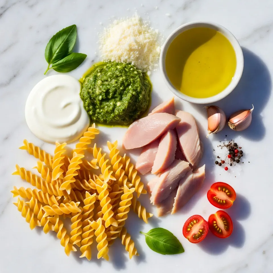 These ingredients come together to create a rich and flavorful dish. Each one plays a key role in building layers of taste. The pasta serves as the perfect base, while the chicken adds protein and heartiness. The pesto brings in fresh herbs, and the cream creates that luscious texture. Finally, the garnishes not only beautify the dish but add a burst of flavor.