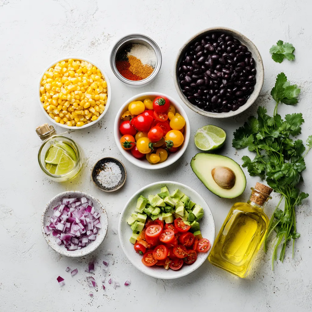 • Mix Ingredients: Combine the corn, beans, and veggies. Add the dressing right before serving.