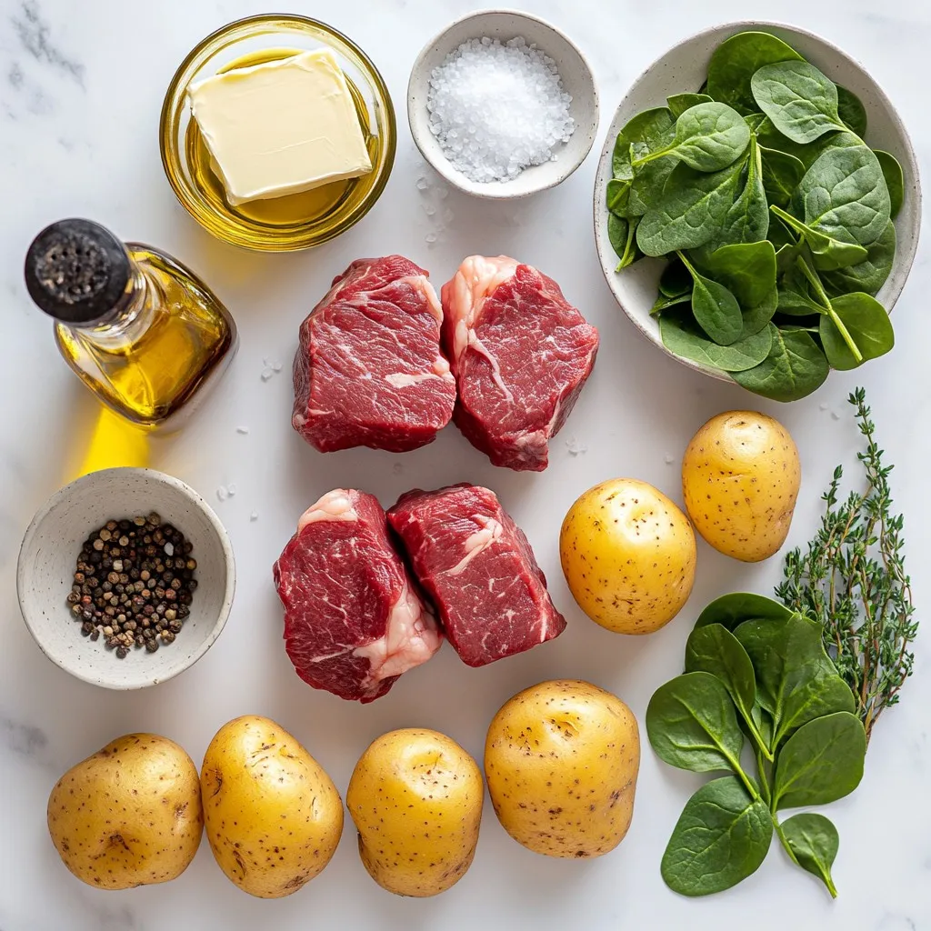 For seasoning, salt and pepper are essential. They enhance the flavors without overpowering them. If you want a fresh twist, baby spinach is a nice touch. Finally, olive oil helps with searing the steak to perfection.