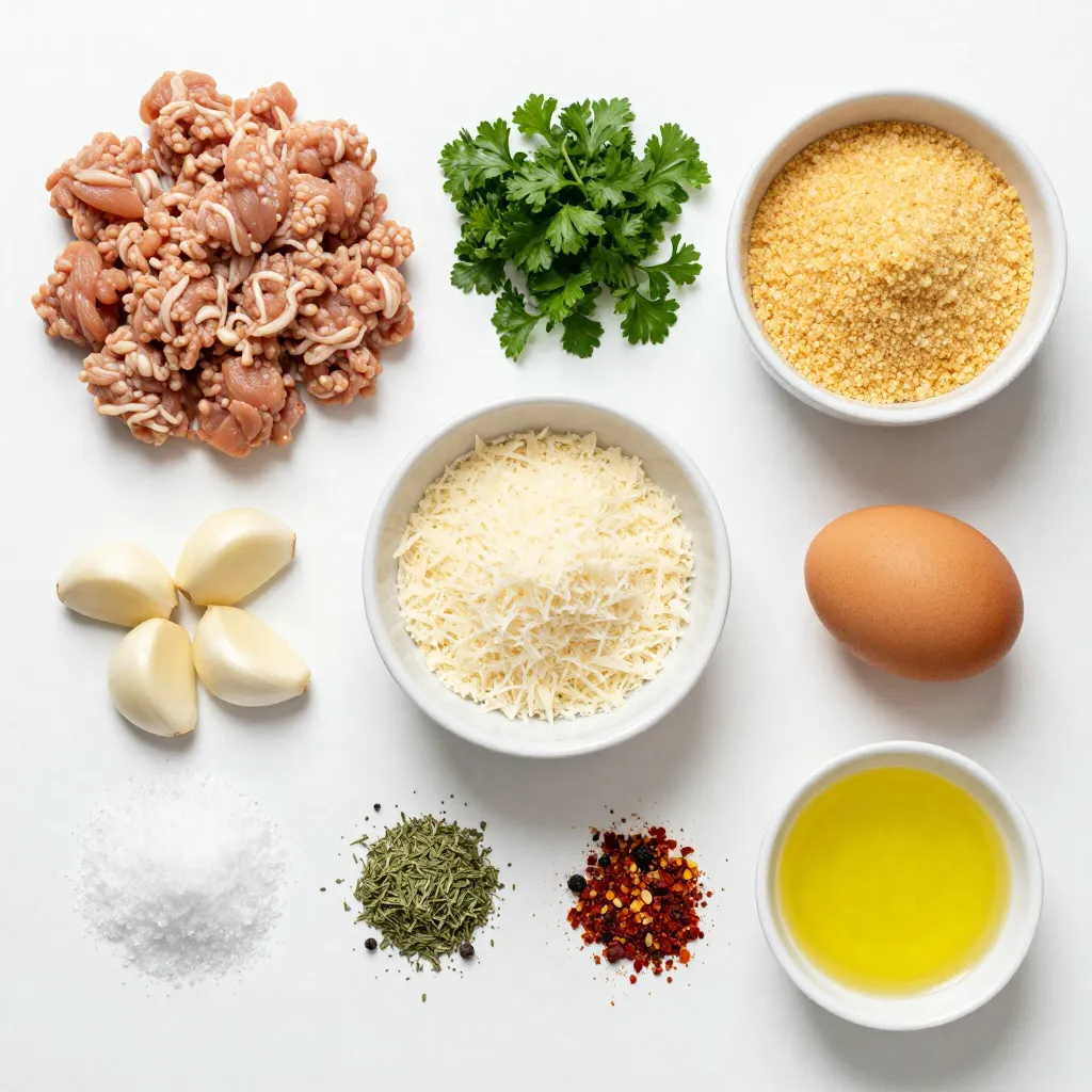To start, grab a large mixing bowl. Add one pound of ground turkey. Next, toss in three cloves of minced garlic. Then, add one cup of finely chopped parsley. Sprinkle in half a cup of breadcrumbs and a quarter cup of grated Parmesan cheese. Crack in one large egg. Now, add one teaspoon of dried oregano, one teaspoon of salt, half a teaspoon of black pepper, and if you like heat, a quarter teaspoon of red pepper flakes. Gently mix everything together until just combined. Be careful not to overmix; we want tender, juicy meatballs.