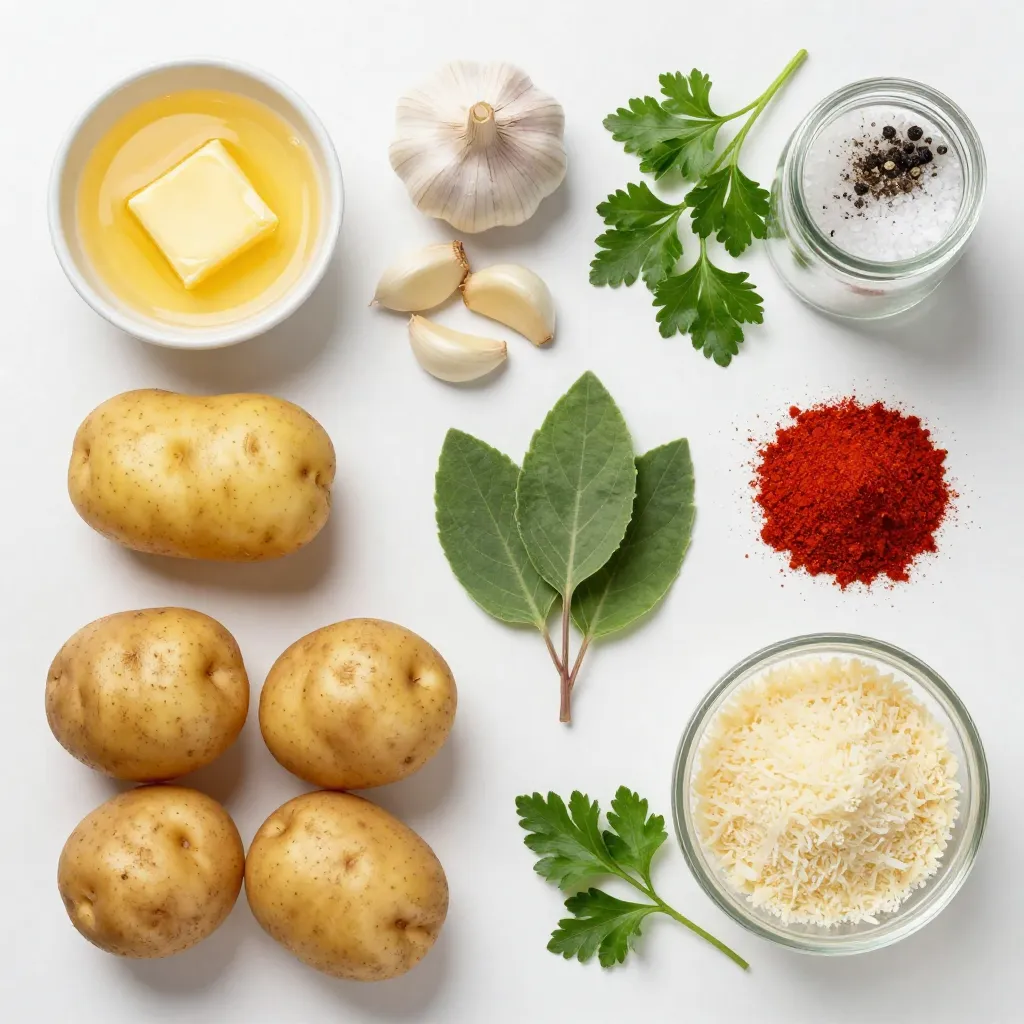 Gathering the right ingredients is key. First, choose medium-sized russet potatoes. They have a great texture and flavor. Next, you’ll need unsalted butter. This adds richness without overpowering the dish. Garlic brings depth to the flavor, so don’t skimp on the minced cloves.