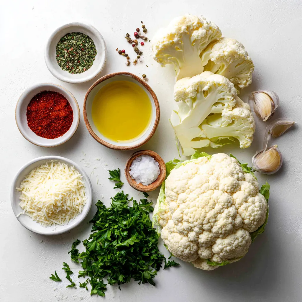These ingredients create a tasty base for the dish. The cauliflower acts as the star, while olive oil adds richness. The garlic packs a punch, and Parmesan gives a savory kick.