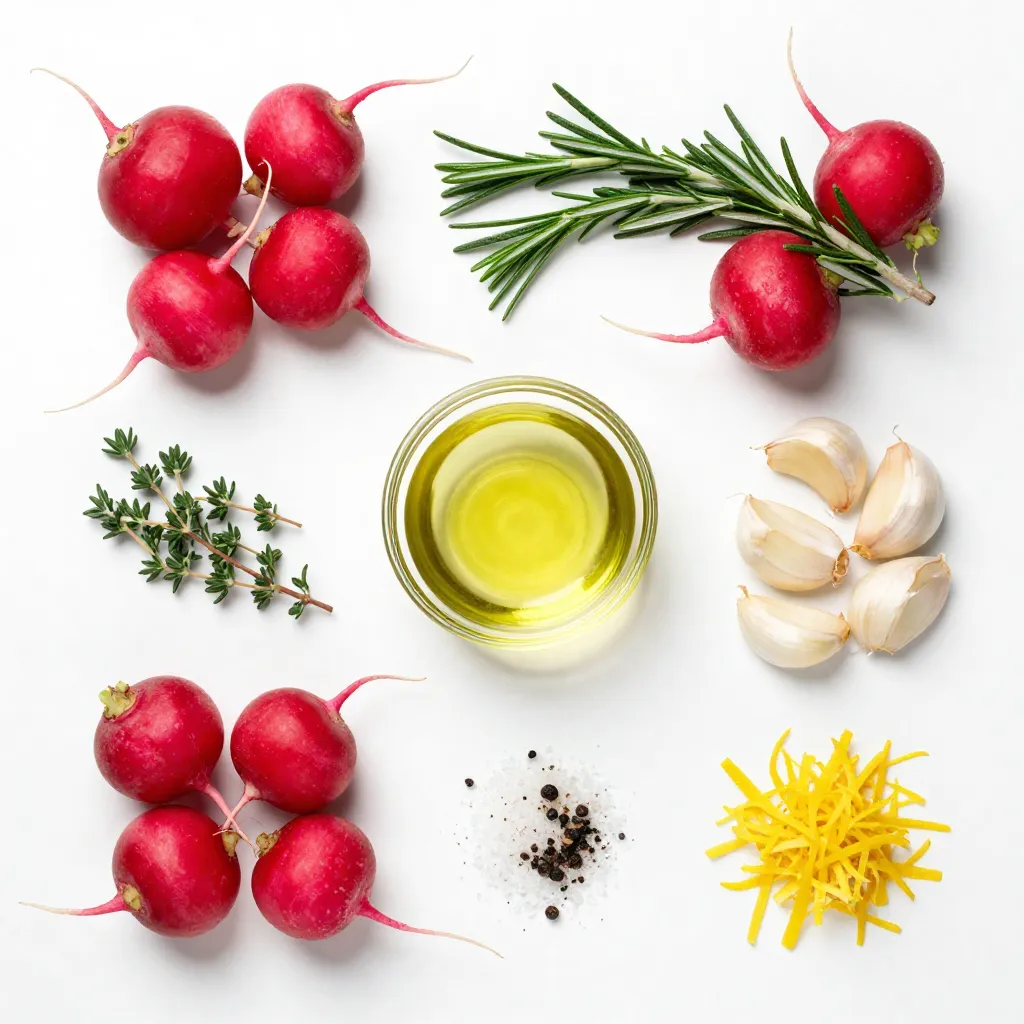 Each ingredient plays a role. Radishes offer a crisp texture and a mild flavor. Olive oil adds richness and helps with roasting. Garlic gives a warm, savory taste. Rosemary and thyme bring earthiness. Sea salt and pepper enhance all flavors. Finally, lemon zest adds brightness. This combination creates a dish that is both tasty and easy to prepare.