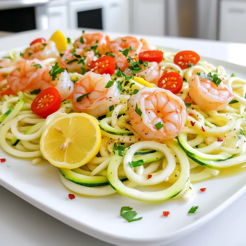 To make Lemon Garlic Shrimp with Zoodles, you need fresh ingredients. Start with large shrimp. They should be peeled and deveined for easy cooking. You will also need medium zucchini. A spiralizer turns zucchini into zoodles. This gives a nice twist to the dish.