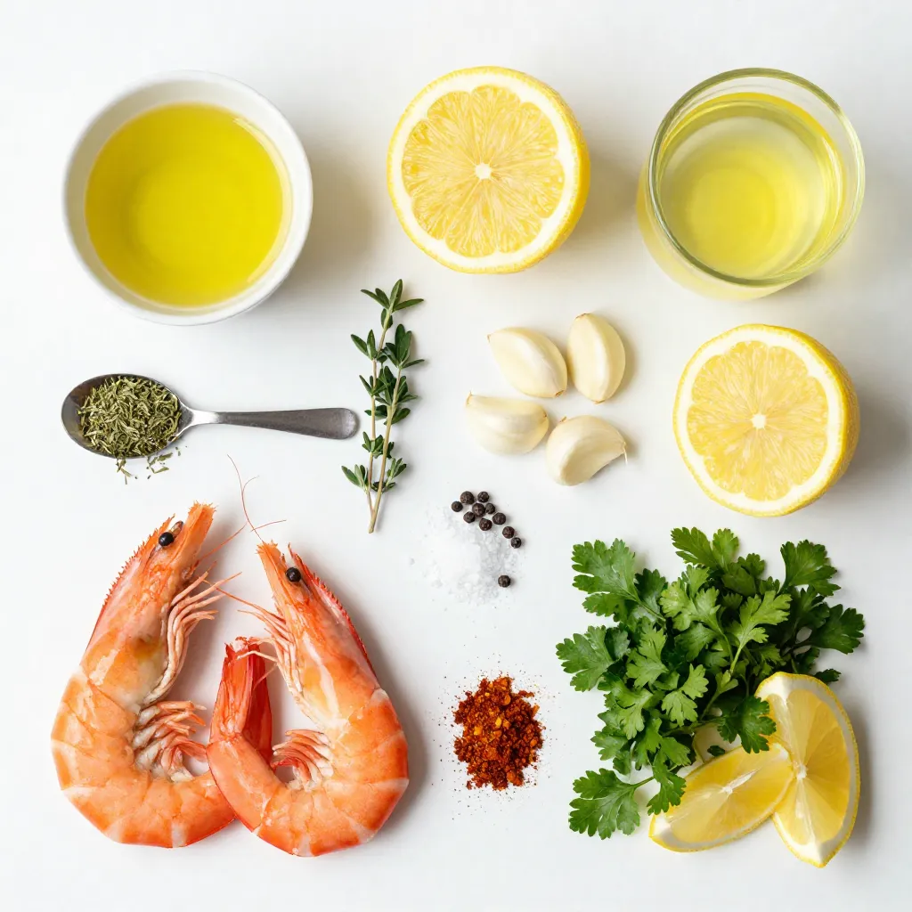 To start, take a medium mixing bowl. Add 3 tablespoons of extra virgin olive oil. Squeeze 2 tablespoons of fresh lemon juice into the bowl. Next, add the zest of 1 large lemon for extra flavor. Then, finely mince 3 cloves of garlic, and toss them in. Now, sprinkle in 1 teaspoon each of dried oregano and dried thyme. Add 1 teaspoon of smoked paprika for a smoky touch. Finally, season with salt and freshly cracked black pepper to taste. Whisk everything together until it blends well. This marinade brings bright, fresh flavors to the shrimp.