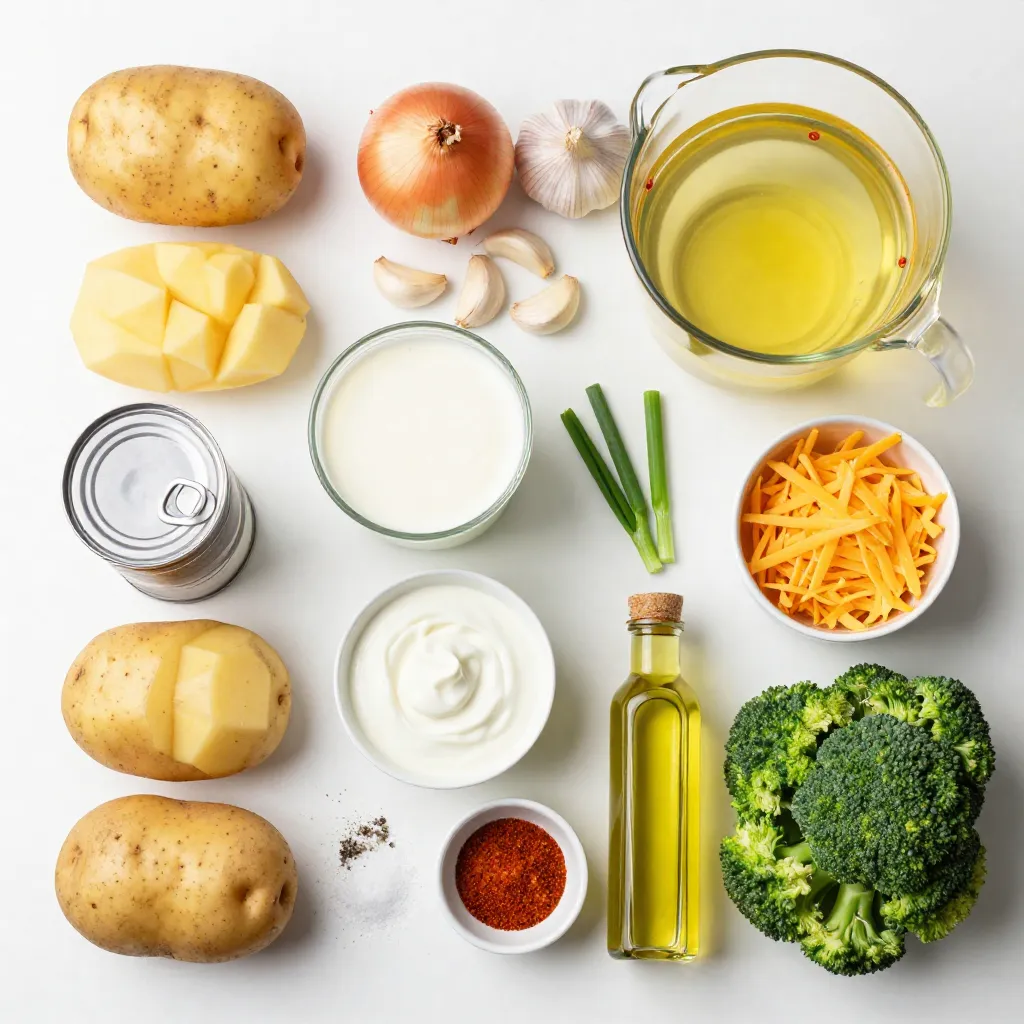These ingredients give the soup its rich and creamy texture. The russet potatoes are key. They break down well, making the soup thick and hearty. Adding onion and garlic boosts the flavor base, creating a warm aroma that fills your kitchen.