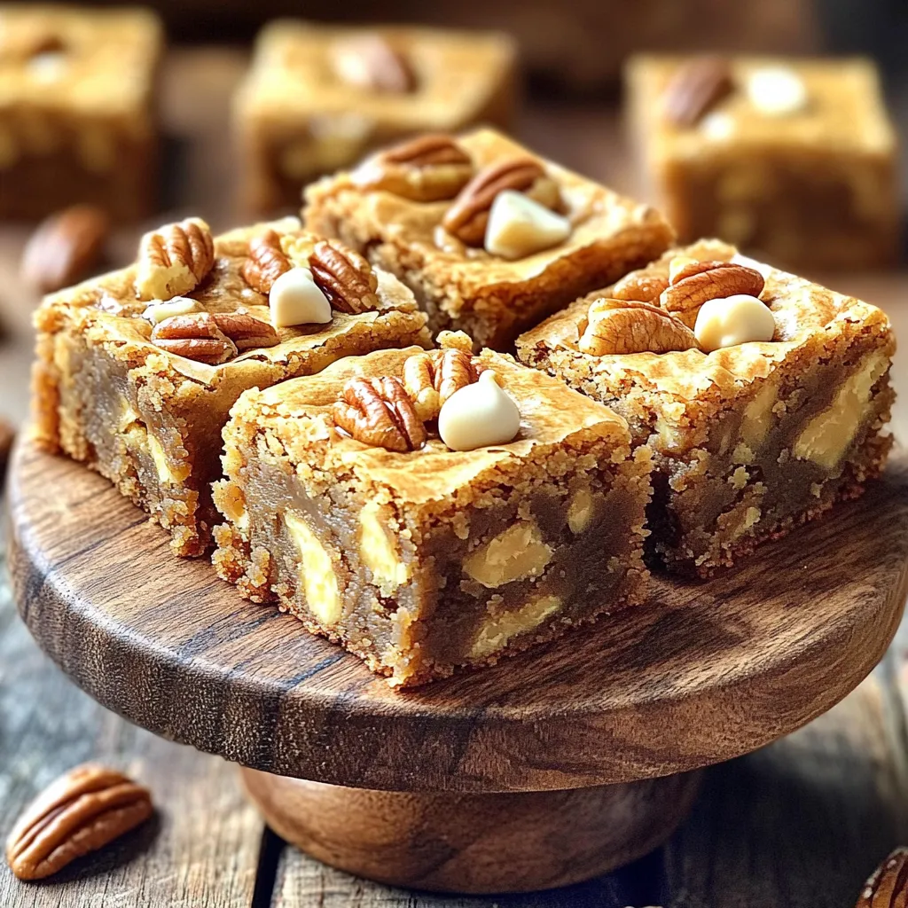 - Presentation Tips: For an eye-catching presentation, serve the blondies on a decorative cake stand. Drizzle some extra maple syrup over the top just before serving and garnish with whole pecans for an elegant finish!
