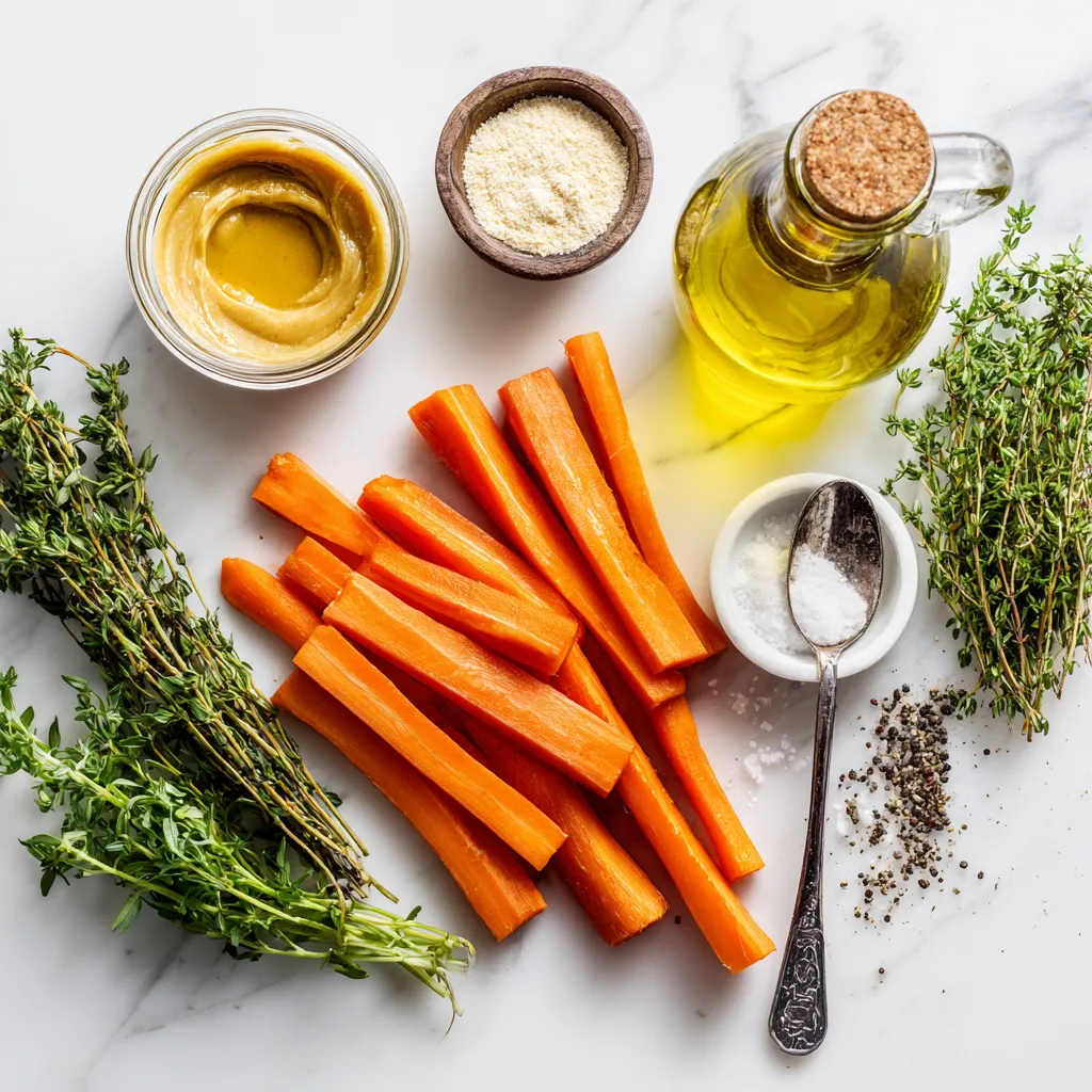 Start by preheating your oven to 425°F (220°C). This heat makes the carrots sweet and tender. Next, grab a large mixing bowl. In this bowl, combine 3 tablespoons of pure maple syrup, 2 tablespoons of Dijon mustard, and 2 tablespoons of extra-virgin olive oil. Add 1 teaspoon of garlic powder, 1/2 teaspoon of sea salt, and 1/4 teaspoon of freshly ground black pepper. Whisk these ingredients together until they blend smoothly.
