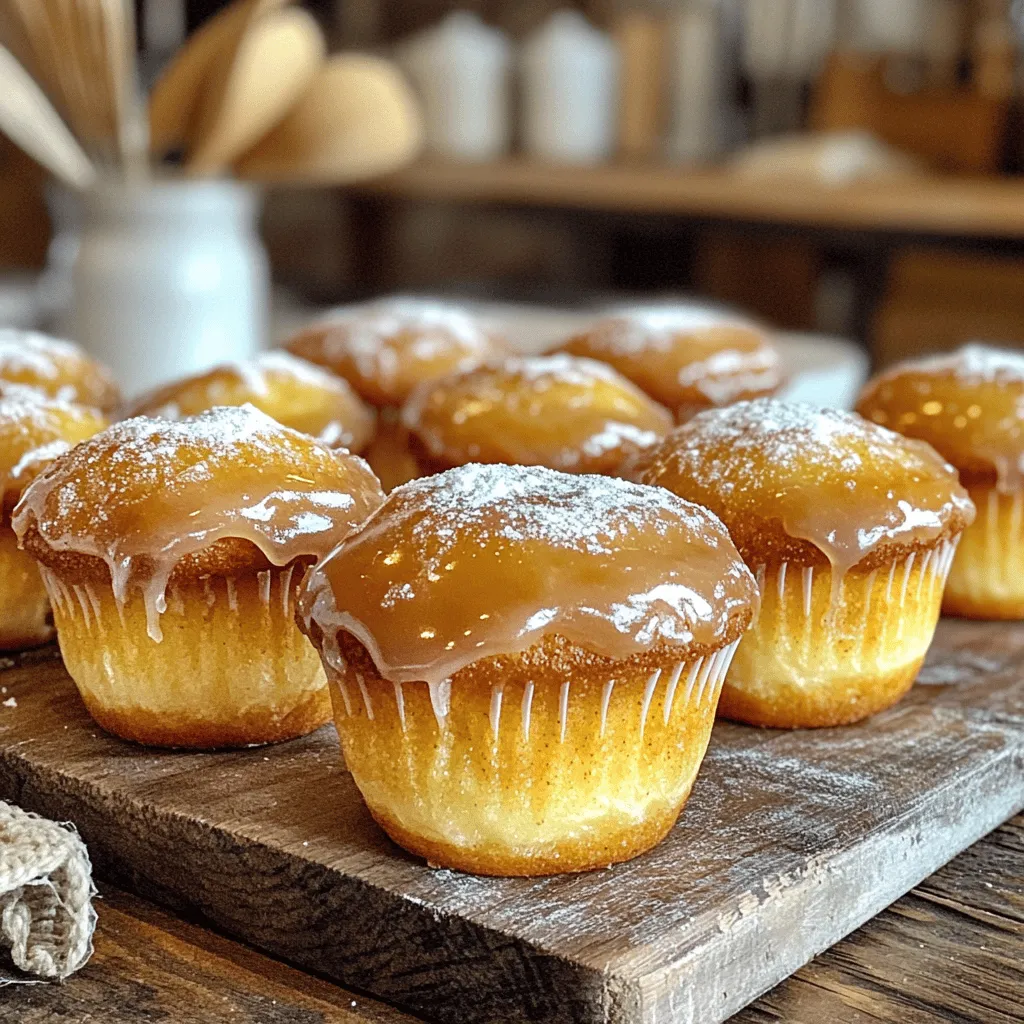 To make maple glazed donut muffins, gather these key items: - 1 ½ cups all-purpose flour - ¾ cup granulated sugar - 1 tablespoon baking powder - ½ teaspoon salt - 1 teaspoon ground cinnamon - ½ teaspoon ground nutmeg - ¾ cup milk - ¼ cup unsalted butter, melted - 1 large egg - 2 teaspoons pure vanilla extract - ½ cup maple syrup (for glaze) - 1 tablespoon unsalted butter (for glaze) - 1 tablespoon powdered sugar (for glaze) Measuring your ingredients correctly is key. Here are some tips: - Use dry measuring cups for flour and sugar. - Scoop flour gently and level with a knife. - For liquids, use a clear measuring cup. - Check the measurement at eye level. - Always pack brown sugar firmly into the cup. Quality matters in baking. Here’s what to look for: - All-purpose flour: Choose unbleached for best results. - Granulated sugar: Use pure cane sugar for better flavor. - Maple syrup: Look for pure maple syrup, not imitation. - Unsalted butter: This gives you control over salt levels. - Fresh spices: Use whole spices if possible; they have more flavor. Start by preheating your oven to 350°F (180°C). This helps the muffins bake evenly. Next, prepare your muffin tin. You can grease it with cooking spray or use muffin liners. This stops the muffins from sticking. In a large bowl, add the dry ingredients. Combine 1 ½ cups all-purpose flour, ¾ cup granulated sugar, 1 tablespoon baking powder, ½ teaspoon salt, 1 teaspoon ground cinnamon, and ½ teaspoon ground nutmeg. Whisk these together until they mix well. This helps the muffins rise and taste great. In a separate bowl, mix the wet ingredients. Combine ¾ cup milk, ¼ cup melted unsalted butter, 1 large egg, and 2 teaspoons pure vanilla extract. Whisk until smooth. This mixture adds moisture and flavor to your muffins. Gently pour the wet mixture into the dry ingredients. Stir with a spatula until just combined. Don’t overmix; some lumps are good! Now, fill each muffin cup about three-quarters full with the batter. Place the tin in the oven and bake for 15 to 18 minutes. Check if they’re ready by inserting a toothpick; it should come out clean. While the muffins bake, prepare the maple glaze. In a small saucepan, mix ½ cup maple syrup and 1 tablespoon unsalted butter. Heat over low heat until the butter melts. Then, stir in 1 tablespoon powdered sugar. Keep stirring until the glaze is smooth and shiny. After baking, let the muffins cool in the tin for about 5 minutes. Then, transfer them to a wire rack. While they are still warm, dip the tops into the maple glaze. Allow any extra glaze to drip back in the pan. This makes sure they are well-coated. Let them sit on the rack until the glaze sets. Enjoy your sweet, fluffy maple glazed donut muffins! To bake perfect muffins, follow these simple tips: - Preheat your oven to 350°F (180°C) for even cooking. - Grease your muffin tin or use liners. This helps with easy removal. - Mix dry and wet ingredients separately. This keeps your muffins light. - Don't overmix the batter. Lumps are okay. They add to the texture. - Fill muffin cups three-quarters full. This allows room for rising. - Check for doneness with a toothpick. It should come out clean. Avoid these common mistakes to ensure great muffins: - Overmixing the batter can lead to dense muffins. Stop mixing when combined. - Not using fresh baking powder can affect the rise. Check the date! - Skipping the glaze might leave your muffins less sweet. The glaze adds flavor. - Opening the oven too soon can cause muffins to sink. Wait until halfway through baking. - Not letting muffins cool before glazing can make the glaze runny. Be patient! To boost flavor and texture, try these tricks: - Add a pinch of salt to the glaze. It balances the sweetness. - Experiment with spices like nutmeg or cardamom. They add warmth and depth. - Mix in chopped nuts or chocolate chips for texture. They add a fun crunch. - Use brown sugar instead of granulated sugar for richer flavor. - Drizzle extra maple syrup over the muffins for a sweet finish. These tips will help you create maple glazed donut muffins that are truly irresistible! {{image_4}} You can change the flavor of your muffins by adding seasonal spices or ingredients. For fall, try adding pumpkin puree and a sprinkle of ginger. In spring, mix in fresh blueberries for a burst of flavor. Summer is great for lemon zest or even some diced strawberries. Each season brings new tastes, making your muffins fun to enjoy all year round. If you want to switch up the glaze, consider using chocolate or vanilla. For a chocolate glaze, melt chocolate chips with a bit of cream. Mix until smooth and dip the muffins in. A vanilla glaze can be made with powdered sugar, vanilla extract, and a splash of milk. Both options add a delightful twist to your maple glazed donut muffins. You can make these muffins healthier with simple swaps. Use whole wheat flour instead of all-purpose flour for more fiber. Swap out granulated sugar for coconut sugar or honey to cut down on refined sugars. You can even use Greek yogurt instead of butter for added protein. These changes keep the muffins tasty while making them a bit lighter. To store leftover muffins, let them cool completely. Place them in an airtight container. This keeps them fresh for up to three days. If you want them to last longer, consider freezing them. You can freeze these muffins easily. Wrap each muffin in plastic wrap. Then place them in a freezer bag. They will stay fresh for about two to three months. Just remember to label the bag with the date. To reheat muffins, take them out of the fridge or freezer. If frozen, let them thaw at room temperature for about 30 minutes. Preheat your oven to 350°F (180°C). Place the muffins on a baking sheet and warm them for about 5 to 10 minutes. You can also microwave a muffin for about 15-20 seconds. Enjoy them warm with that sweet maple glaze! To make your donuts fluffier, ensure you don't overmix the batter. Overmixin