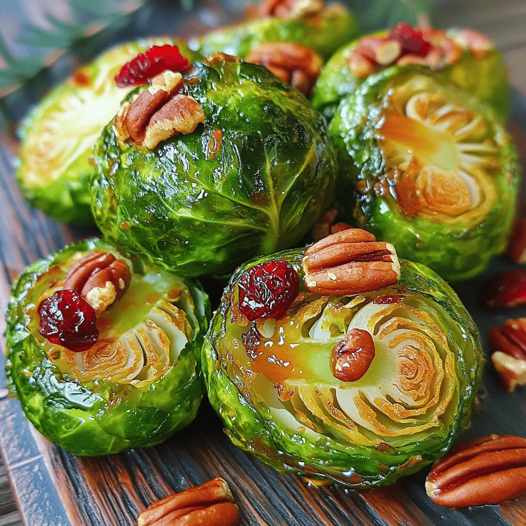 ![To make this tasty dish, gather these simple ingredients: - 1 pound Brussels sprouts, trimmed and halved - 3 tablespoons extra virgin olive oil - 1/4 cup pure maple syrup - 2 tablespoons balsamic vinegar - 1 teaspoon Dijon mustard - 1/2 teaspoon fine sea salt - 1/4 teaspoon freshly ground black pepper - 1/4 cup pecans, roughly chopped for added crunch - 1/4 cup dried cranberries for a touch of sweetness - Fresh thyme leaves for an aromatic garnish (optional) You can easily adjust ingredient amounts based on what you need. Here are some quick conversions: - If you want to make more, use 2 pounds of sprouts and double the glaze. - For less, cut the amounts in half. This still keeps the taste great. - In a pinch, you can swap the pecans for walnuts or almonds. This dish not only tastes good but is also good for you. Here’s a quick look at what’s inside: - Calories: About 200 per serving - Fat: 12 grams (mostly healthy fats from olive oil and nuts) - Carbohydrates: 24 grams (includes natural sugars from maple syrup) - Fiber: 5 grams (great for digestion from Brussels sprouts) - Protein: 3 grams (from nuts and sprouts) This breakdown helps you see the benefits of each ingredient. Enjoy making this dish with fresh, seasonal produce for the best flavor and health benefits. For the complete recipe, check out the Full Recipe. Start by preheating your oven to 400°F (200°C). This step is key for getting perfect crispness. While the oven warms up, clear your kitchen counter. Gather all your tools and ingredients. Having everything ready makes cooking much easier. Take 1 pound of Brussels sprouts. Trim off the ends and cut them in half. Place the halved sprouts in a large mixing bowl. Add 3 tablespoons of extra virgin olive oil and 1/2 teaspoon of fine sea salt. Sprinkle in 1/4 teaspoon of freshly ground black pepper. Toss the sprouts until they are well coated. This ensures each sprout gets flavor. Spread the seasoned Brussels sprouts on a baking sheet. Make sure the cut sides face down. This helps them brown nicely. Place the baking sheet in your preheated oven. Roast for 20-25 minutes. They should be crispy and golden. While they roast, make the maple glaze. In a small saucepan, mix 1/4 cup of pure maple syrup, 2 tablespoons of balsamic vinegar, and 1 teaspoon of Dijon mustard. Heat over medium heat but do not let it boil. Once the sprouts are ready, drizzle the glaze over them. Toss gently to coat. Return the glazed sprouts to the oven for 5 more minutes. This step caramelizes the glaze, making it rich and tasty. After that, take them out and add 1/4 cup of roughly chopped pecans and 1/4 cup of dried cranberries. These add crunch and sweetness. If you want, garnish with fresh thyme leaves for even more flavor. For the full details, check the Full Recipe. When you pick Brussels sprouts, look for bright green ones. They should feel firm and heavy in your hand. Avoid any that have yellow leaves or feel soft. The size matters too; smaller sprouts are sweeter and more tender. If you can, buy them on the stalk. They stay fresh longer that way. Caramelization makes Brussels sprouts sweet and tasty. To get it right, roast them cut-side down. This lets them get nice and brown. Make sure they have space on the baking sheet. If they are too close together, they will steam instead of roast. Use high heat, about 400°F, for best results. Check them halfway through and give them a stir for even cooking. One big mistake is overcooking the sprouts. They should be tender but still have a bit of crunch. Avoid using too much glaze; it can make them soggy. Always glaze right after roasting, then caramelize them for just a few minutes. This step adds flavor without losing the sprout's crispness. Lastly, don’t skip the nuts and cranberries; they add great texture and taste. For the full recipe, check the [Full Recipe]. {{image_4}} You can change the taste of maple glazed Brussels sprouts by adding different nuts or seeds. Try walnuts for a rich flavor or sunflower seeds for a crunch. Almonds also work well; they add a nice texture and nutty taste. Each option gives a new twist to your dish. Just sprinkle them on top after roasting for the best crunch and flavor. If you need to adjust for dietary needs, it’s easy. Use agave syrup instead of maple syrup for a vegan option. For a nut-free dish, skip the pecans and use pumpkin seeds. You can also swap balsamic vinegar with apple cider vinegar for a light zing. These swaps keep the dish tasty while meeting your needs. Brussels sprouts shine in fall and winter, but you can adapt them year-round. In spring, add fresh herbs like basil or parsley for brightness. In summer, pair with grilled corn for a sweet twist. You can also mix in seasonal veggies like carrots or sweet potatoes for color and taste. This way, your dish stays fresh and exciting no matter the season. For the full recipe, check out the Maple Glazed Brussels Sprouts Delight. After enjoying your maple glazed Brussels sprouts, store leftovers right. Place them in an airtight container. They will stay fresh for about three days in the fridge. Keep them away from strong-smelling foods. This helps maintain their flavor. When you reheat, aim to keep the sprouts crispy. Use your oven for the best results. Preheat it to 350°F (175°C). Spread the sprouts on a baking sheet. Heat them for about 10-15 minutes. This method helps keep them crunchy and flavorful. You can also microwave them for quick reheating, but they may not stay as crispy. If you want to enjoy these sprouts later, freezing works too. First, let them cool completely. Spread them on a baking sheet in a single layer. Freeze until solid, then transfer to a zip-top bag. They can last up to three months in the freezer. When ready to eat, thaw them overnight in the fridge. Reheat using the oven for the best taste. Enjoy your tasty treat again! Yes, you can prepare these Brussels sprouts ahead of time. After roasting them, let them cool. Store them i