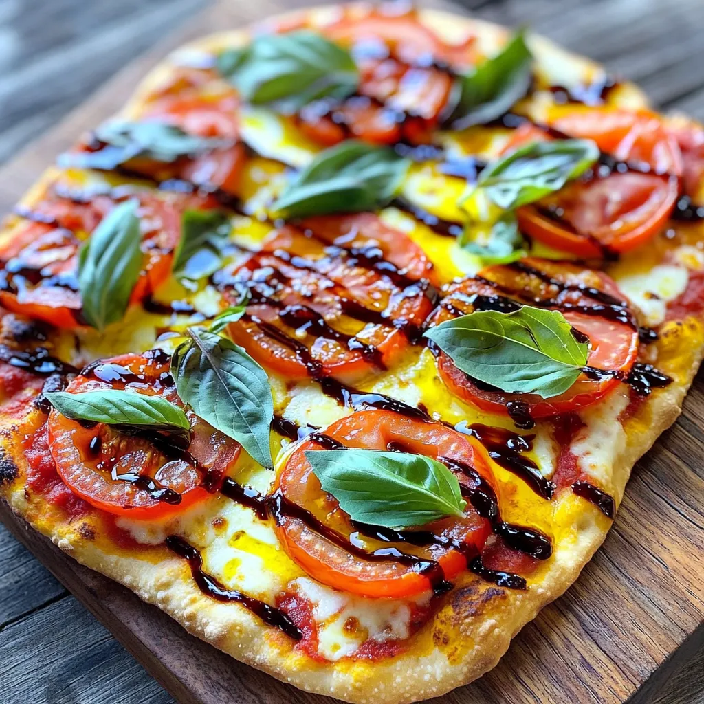 Serve your pizza on a rustic wooden board for a charming touch. Slice the flatbreads into wedges for easy sharing. Garnish with extra fresh basil leaves to make it pop. If you want to impress, drizzle balsamic glaze over the top. This adds a sweet and tangy finish, making each bite special.