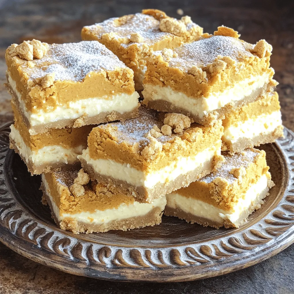 Presentation is key for any dessert. For your pumpkin cheesecake cookie bars, dust them lightly with powdered sugar. A sprinkle of cinnamon adds a nice touch, too. Serve them on a decorative plate to make them stand out.