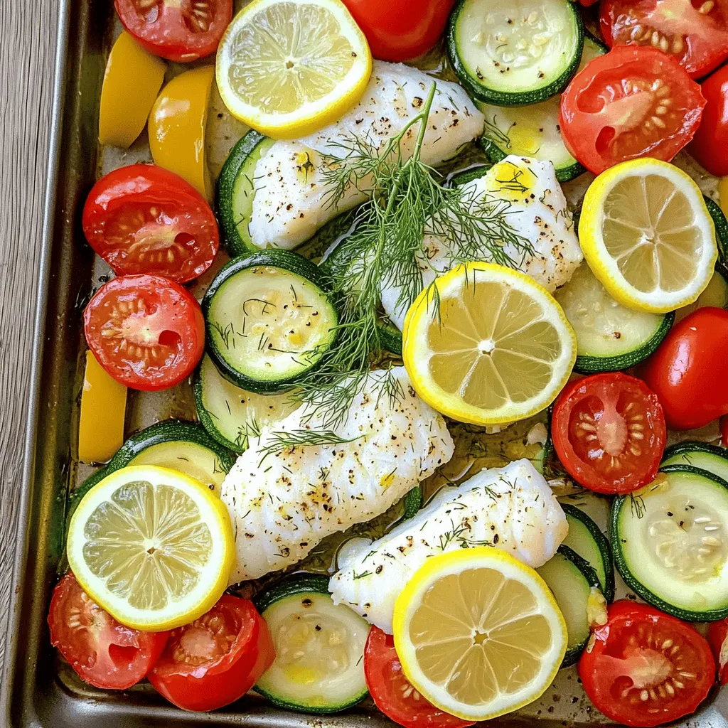 The main ingredients create a bright and fresh dish. Cod fillets are the star. They offer a mild taste and tender texture. The zucchinis, red bell pepper, and cherry tomatoes add color and crunch. I love how the veggies soak up the lemon and dill flavors. Olive oil makes everything smooth and rich. The garlic gives a nice kick, while the lemon brightens the dish. Fresh dill adds a unique taste, making this meal feel special.
