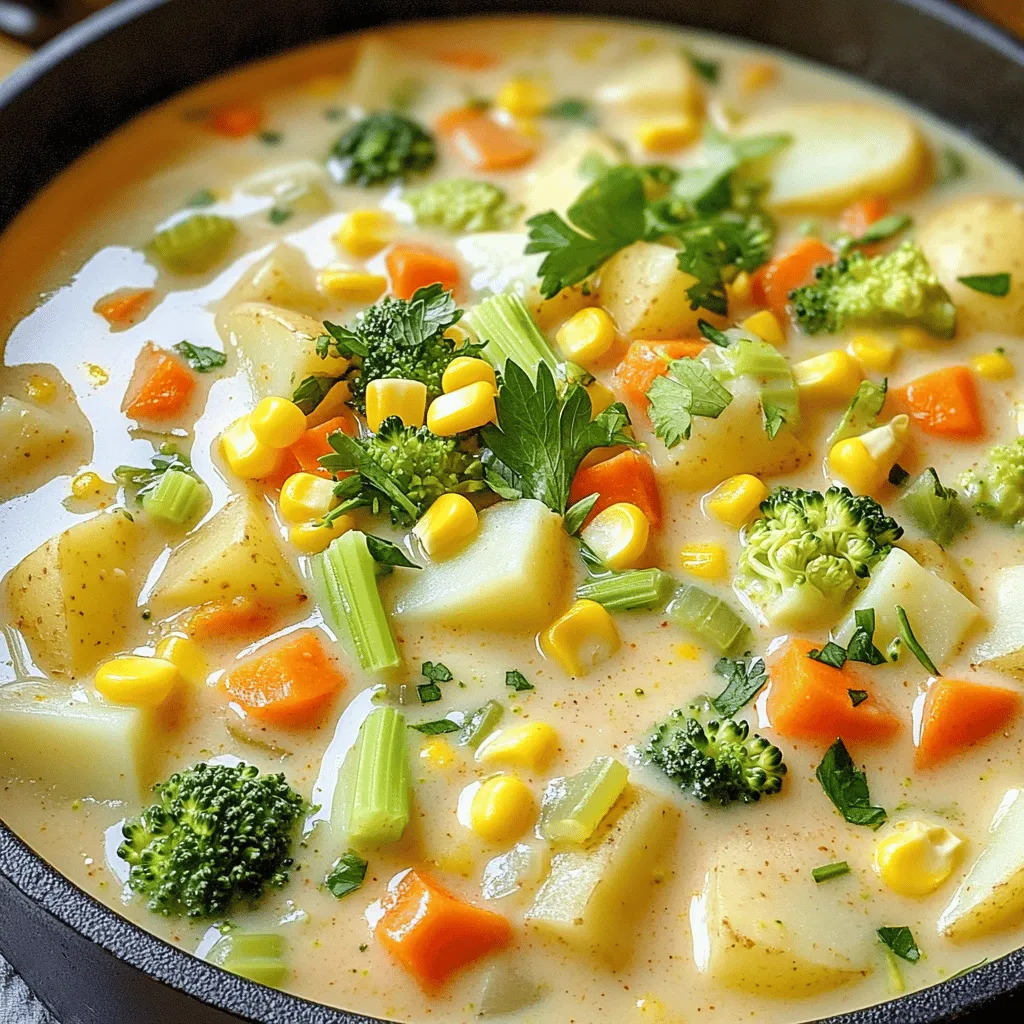 Each ingredient plays a key role in making this chowder tasty. The vegetable broth serves as the base, bringing warmth and flavor. Potatoes add heartiness, while carrots and celery lend sweetness and crunch. Corn and broccoli contribute color and texture, making each bite delightful.