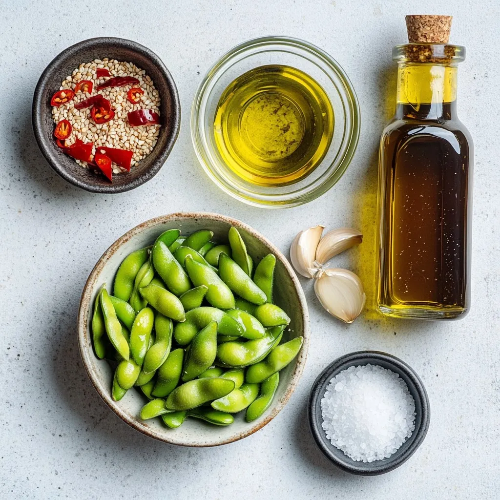 Main Ingredients for Spicy Garlic Edamame