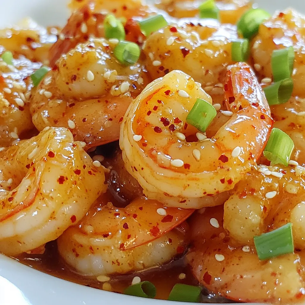 • Just before serving, garnish the shrimp with chopped green onions and a sprinkle of sesame seeds for added texture and flavor.
