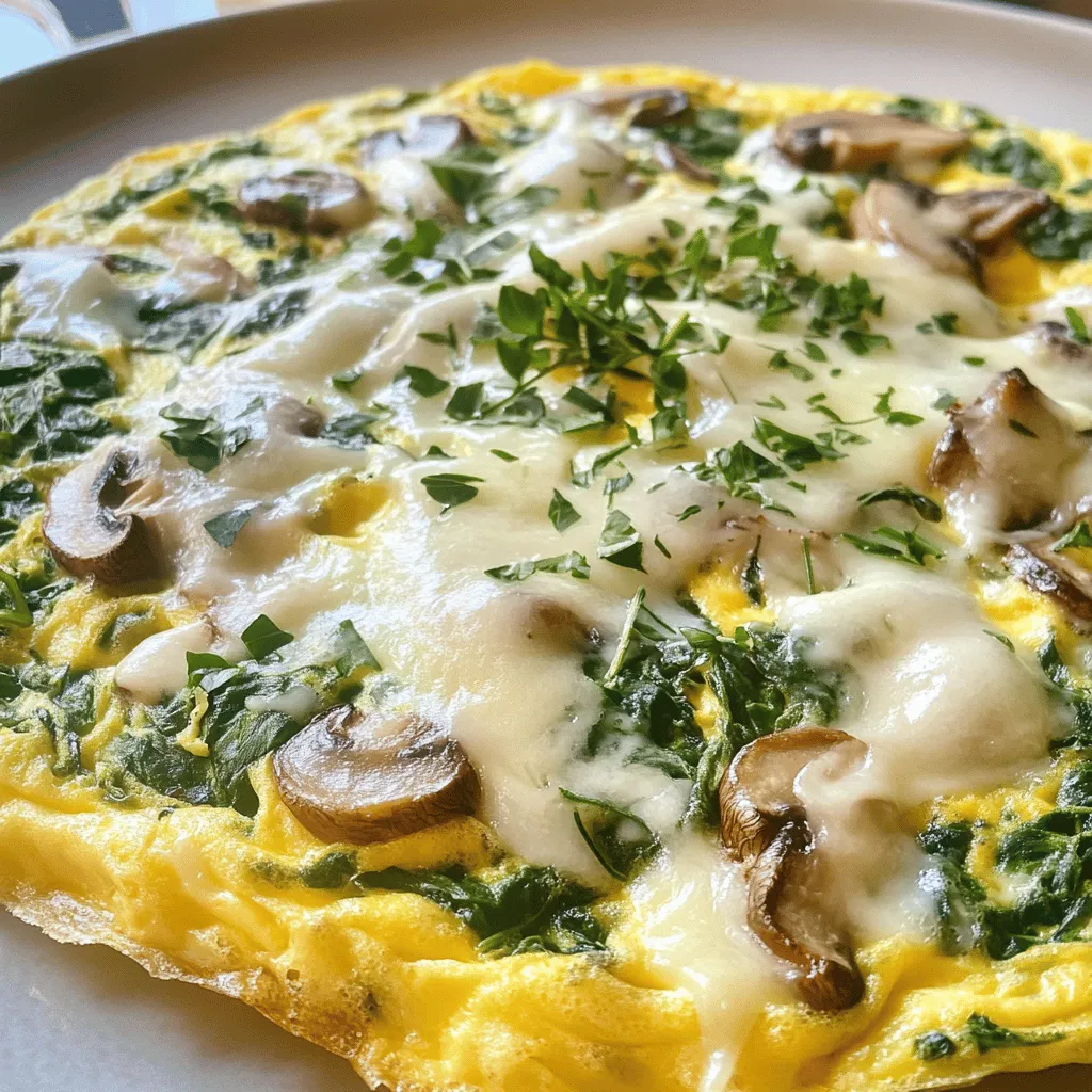 - 6 large eggs - 1 cup fresh spinach, finely chopped - 1 cup mushrooms, sliced - 1/2 cup bell pepper, diced - 1/4 cup onion, finely chopped - 1/2 cup shredded cheese - 2 tablespoons olive oil - Salt and pepper - 1 teaspoon garlic powder - Fresh herbs for garnish When I make a spinach mushroom frittata, I love using fresh ingredients. The eggs form a fluffy base. The spinach adds a vibrant green color. The mushrooms give rich flavor. Bell peppers and onions add sweetness and crunch. Don't forget the cheese for creaminess! - Types of mushrooms: Button mushrooms are mild. Cremini mushrooms have a deeper taste. I often choose cremini for a richer frittata. - Cheese options: Cheddar gives a sharp taste. Feta offers a creamy, tangy note. Both cheeses work well, but I lean toward feta for extra flavor. Using the right ingredients makes all the difference. Fresh herbs like parsley or basil add a touch of brightness. Pick your favorites and enjoy crafting this dish! 1. First, preheat your oven to 375°F (190°C). This helps the frittata cook evenly. 2. Next, crack 6 large eggs into a bowl. Whisk them well until the yolks and whites blend. Add a pinch of salt, pepper, and 1 teaspoon of garlic powder. Mix until combined. 1. Heat 2 tablespoons of olive oil in a large, oven-safe skillet over medium heat. 2. Add 1/4 cup of finely chopped onion and 1/2 cup of diced bell pepper. Sauté for 3-4 minutes. Stir often until the veggies are soft and fragrant. 3. Now, stir in 1 cup of sliced mushrooms. Cook for an additional 4-5 minutes until they turn golden brown. 4. Next, add 1 cup of finely chopped spinach. Stir it in for about 1-2 minutes. Cook just until it wilts. 5. Pour the whisked eggs over the cooked vegetables. Gently stir to mix everything together. 6. Top with 1/2 cup of shredded cheese, spreading it evenly for a nice cheesy crust. 1. Let the frittata cook on the stovetop for about 3-4 minutes. The edges should start to set, but the center will be a bit runny. 2. Carefully move the skillet to the preheated oven. Bake for 15-20 minutes. The frittata will puff up and set in the center when done. 3. After baking, remove the skillet from the oven. Let it cool a bit before slicing. Cut it into wedges for serving. 4. Garnish with fresh herbs like parsley or basil for a burst of flavor. Enjoy your delicious Spinach Mushroom Frittata! Sauté your vegetables well. This step enhances their flavors and gives the frittata a great taste. Cook the onion and bell pepper until soft. Add the mushrooms next and let them brown. This brings out their rich flavor. Adjust your seasonings to fit your taste. I often sprinkle more salt or pepper to make it pop. Add garlic powder for depth. You can also try different herbs for a unique twist. Serve the frittata warm. Cut it into wedges and place on individual plates. Pair it with a light salad or mixed greens. This makes for a full meal that looks appealing. Garnish with fresh herbs like parsley or basil. They add a burst of color and flavor. Just sprinkle them on top before serving. This small touch makes your frittata look gourmet! {{image_4}} You can switch up ingredients to fit your taste. If you don’t like spinach, try kale or Swiss chard. These greens add color and nutrition. For mushrooms, consider zucchini or bell peppers. Both bring a fresh taste to the dish. When it comes to cheese, the options are endless. Cheddar gives a sharp bite, while feta offers a creamy touch. You can also use mozzarella for a milder flavor. Goat cheese adds a tangy twist that is hard to resist. If you need a gluten-free meal, you are in luck! This frittata is naturally gluten-free. Just make sure all your ingredients are free from gluten. For a vegetarian option, this recipe is perfect as is. To make it vegan, replace the eggs with a chickpea flour mixture. Mix 1 cup of chickpea flour with 1 cup of water and season it well. This creates a great base for your frittata. To keep your frittata fresh, store it in the fridge. Place it in an airtight container. This way, it can last for up to three days. If you want to reheat the frittata, preheat your oven to 350°F (175°C). Place the frittata on a baking sheet. Heat it for about 10 to 15 minutes. You can also use a microwave. Just heat it for one minute at a time, checking often. If you want to save your frittata for later, freezing is a great option. First, let the frittata cool completely. Then, cut it into slices. Wrap each slice in plastic wrap. Place the wrapped slices in a freezer bag. Remove as much air as you can before sealing. Your frittata can last for up to three months in the freezer. When you're ready to eat, take out a slice. Thaw it in the fridge overnight for best results. To reheat, use the oven method mentioned earlier or microwave it. Just ensure it is heated all the way through. Enjoy your tasty frittata even after it's been frozen! How long does a frittata last in the fridge? A frittata can last about 3 to 4 days in the fridge. Make sure to store it in an airtight container. It keeps its flavor and texture well during this time. Can I make a frittata ahead of time? Yes, you can make a frittata ahead of time. Just cook it, cool it, and store it in the fridge. When you’re ready to eat, you can reheat it in the oven or microwave. What can I use instead of eggs? If you want a no-egg option, try using a mix of silken tofu or chickpea flour. Both can create a good texture and hold the ingredients together. How to know when the frittata is done baking? You can tell a frittata is done when it's puffed up and the center is firm. A knife inserted into the center should come out clean. Do I need a specific pan for frittatas? An oven-safe skillet works best for frittatas. Cast iron or non-stick pans are great choices. They help with even cooking and easy serving. Can I use frozen spinach instead of fresh? Yes, you can use frozen spinach. Just thaw it and squeeze out extra water before adding it to the mix. This keeps your fritt