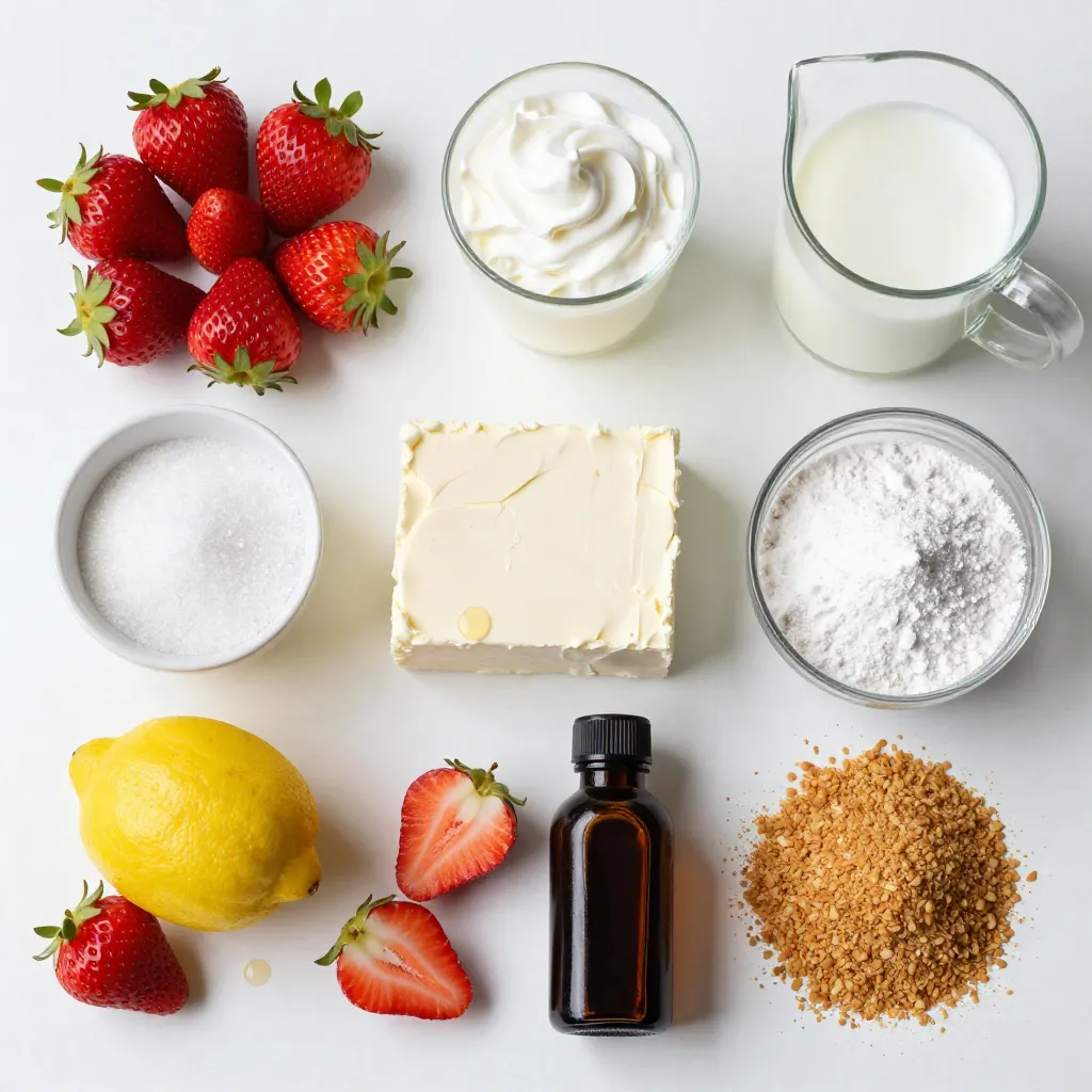 - 2 cups fresh strawberries, hulled and halved - 1 tablespoon fresh lemon juice - 1/3 cup granulated sugar, divided (2 tablespoons for strawberries, 1/4 cup for cream cheese mixture) Fresh strawberries give this ice cream its bright taste. You want ripe and juicy berries. The lemon juice adds a zesty pop. It helps balance the sweetness. The granulated sugar sweetens the strawberries. It also draws out their natural juices. - 1 1/2 cups cream cheese, softened to room temperature - 1 cup heavy cream - 1/2 cup whole milk The cream cheese creates a rich base. It gives the ice cream that cheesecake flavor. Heavy cream makes it smooth and creamy. Whole milk adds a nice touch of richness. These dairy essentials blend together for a luscious texture. - 3/4 cup powdered sugar - 1 teaspoon pure vanilla extract - 1/2 cup crushed graham crackers Powdered sugar helps sweeten the ice cream. It blends well into the creamy mixture. Pure vanilla extract adds depth to the flavor. The crushed graham crackers are the final touch. They add a crunchy bite, just like a cheesecake crust. {{ingredient_image_2}} Macerating the strawberries First, take your fresh strawberries. Halve them and place them in a medium bowl. Add one tablespoon of fresh lemon juice and two tablespoons of granulated sugar. Toss the strawberries well to coat them evenly. Let the mixture sit for thirty minutes. This step helps the strawberries soften and release their sweet juices. Pureeing the mixture Once the resting time is up, grab a blender or food processor. Pour in the macerated strawberries. Blend until you achieve a smooth texture but still have some small chunks. Set this strawberry puree aside for later. Beating the cream cheese In a large mixing bowl, put your softened cream cheese. Use an electric mixer on medium speed for about two minutes. Beat until the cream cheese is smooth and creamy. Slowly add the remaining quarter cup of granulated sugar. Keep mixing until everything is well combined and smooth. Incorporating heavy cream and other ingredients Next, pour in one cup of heavy cream, half a cup of whole milk, three-quarters cup of powdered sugar, and one teaspoon of pure vanilla extract. Whip this mixture on medium-high speed until it becomes light and fluffy. This should take about three to five minutes. Look for soft peaks to form. Folding in strawberry puree Now, gently fold the strawberry puree into the whipped cream mixture. Use a spatula and be careful not to deflate the whipped cream. Make sure the strawberry is well-mixed without losing that lovely lightness. Adding crushed graham crackers Take half a cup of crushed graham crackers and add them to your mixture. Gently stir to combine. This will add a nice crunch and flavor, making your ice cream truly taste like cheesecake. Transfer to airtight container Once everything is mixed, transfer the creamy mixture into an airtight container. Smooth the top with a spatula to make it look nice and even. Recommended freezing time Freeze the ice cream for at least four hours. This will allow it to firm up and become easy to scoop. For the best experience, let it sit at room temperature for about ten minutes before you scoop it. This makes serving much easier! - Whipping tips for heavy cream: Start with very cold heavy cream. This makes it whip faster. Use a clean bowl and beaters to avoid any fat that can ruin the texture. Beat the cream on medium-high until soft peaks form. Don’t over-whip, or it can turn grainy. - Folding technique for incorporation: Use a spatula to fold in the strawberry puree gently. Start in the center and lift the mixture from the bottom. Turn the bowl as you go. This keeps the whipped cream light and fluffy. - Optimal serving temperature: Before serving, let the ice cream sit out for about 10 minutes. This makes it easier to scoop without melting too much. - Presentation tips for serving: Use chilled bowls to keep the ice cream cold longer. Top each serving with fresh strawberry slices and a sprinkle of crushed graham crackers. This adds color and crunch. - Common problems and solutions: If your ice cream is too hard, let it sit out longer before scooping. If it’s too soft, it may need more time in the freezer. - Adjustments for sweetness and creaminess: Taste the mixture before freezing. If it’s not sweet enough, add a bit more sugar. For creaminess, ensure you whip the cream well and fold gently to keep the volume. Pro Tips Use Ripe Strawberries: Choose strawberries that are fully ripe for the best flavor and sweetness in your ice cream. Chill Your Mixing Bowl: For a fluffier texture, chill your mixing bowl and beaters in the freezer before whipping the cream. Mix Gradually: When adding the heavy cream and milk to the cream cheese, mix gradually to prevent lumps and achieve a smooth consistency. Store Properly: For optimal freshness, store the ice cream in an airtight container and press a piece of parchment paper against the surface before sealing. {{image_4}} You can make this ice cream without an ice cream maker. Just mix the ingredients well, then freeze. Use the same ingredients from the original recipe. For a lighter texture, whip the cream first. You can also swap heavy cream for whipped topping if you want. To make a vegan version, use plant-based cream cheese and coconut milk. You can also use almond milk for a lighter taste. Replace the heavy cream with coconut cream. Mix everything like the original. This gives you a creamy, tasty treat without dairy. Want to shake things up? Add different fruits like blueberries or raspberries. You can also mix in chocolate chips or nuts for a fun crunch. Think about adding a swirl of caramel or nut butter. These simple changes can bring new flavors and fun textures to your ice cream. To keep your strawberry cheesecake ice cream fresh, use an airtight container. Glass or plastic containers work well. Make sure to seal the lid tightly. This helps prevent freezer burn. You can also place a piece of 