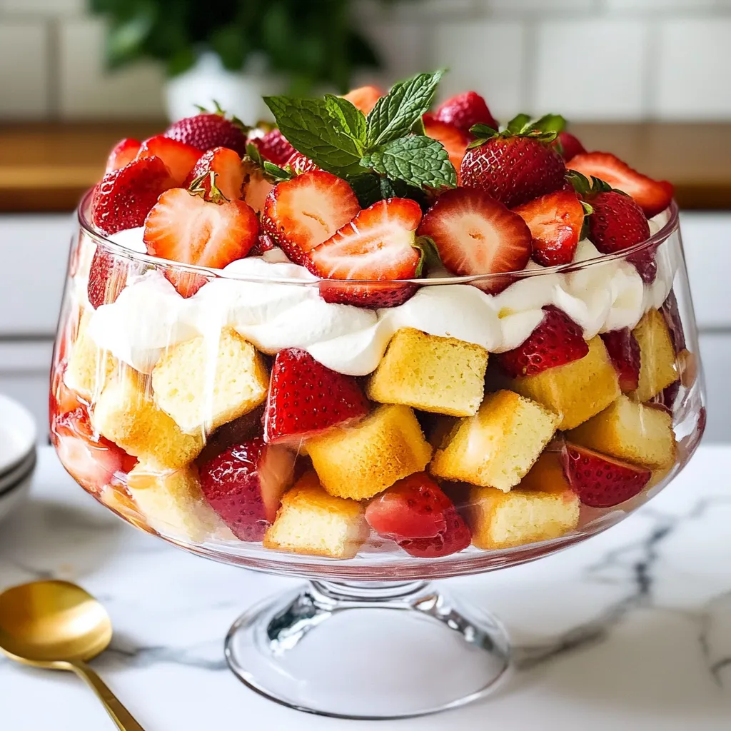 You can prep many parts of this trifle ahead of time. Slice the strawberries and mix them with sugar the night before. Store them in the fridge to let the flavors blend. You can also make the whipped cream a few hours in advance. Just keep it in the fridge until you are ready to serve. This way, you save time when it’s time to layer your trifle.
