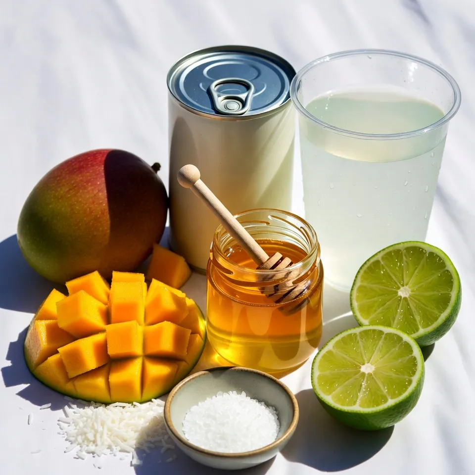 To create Tropical Mango Coconut Popsicles, you need fresh and flavorful ingredients. Start with 2 ripe mangoes. Choose mangoes that feel soft when you press them lightly. Their sweetness adds a perfect base. Next, grab 1 cup of coconut milk. This gives a creamy texture. For extra hydration, use 1/2 cup of coconut water. It brings a refreshing taste.